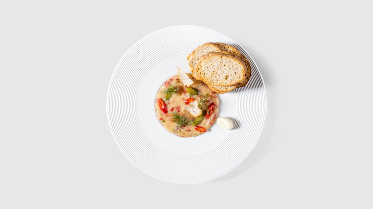 Smetana, sýr, slanina, cibule, kukuřice | Alergeny: 1,5,6,7