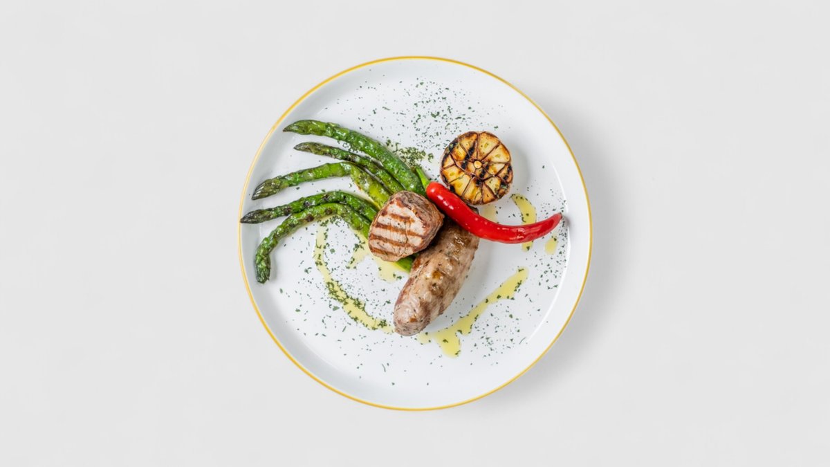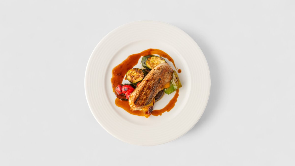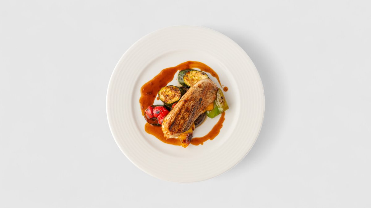 Grilovaná vepřová panenka s tyrolskou šunkou a cherry rajčaty, vinná omáčka