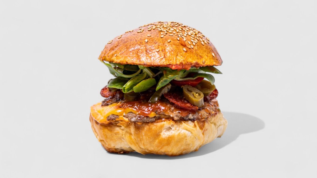 180 g hovězí mleté maso (Chuck roll), cheddar, jalapeños majonéza, slanina, sterilovaná okurka, ledový salát, hranolky se sýrem a slaninou / bez přesných alergenů 🌶️🌶️