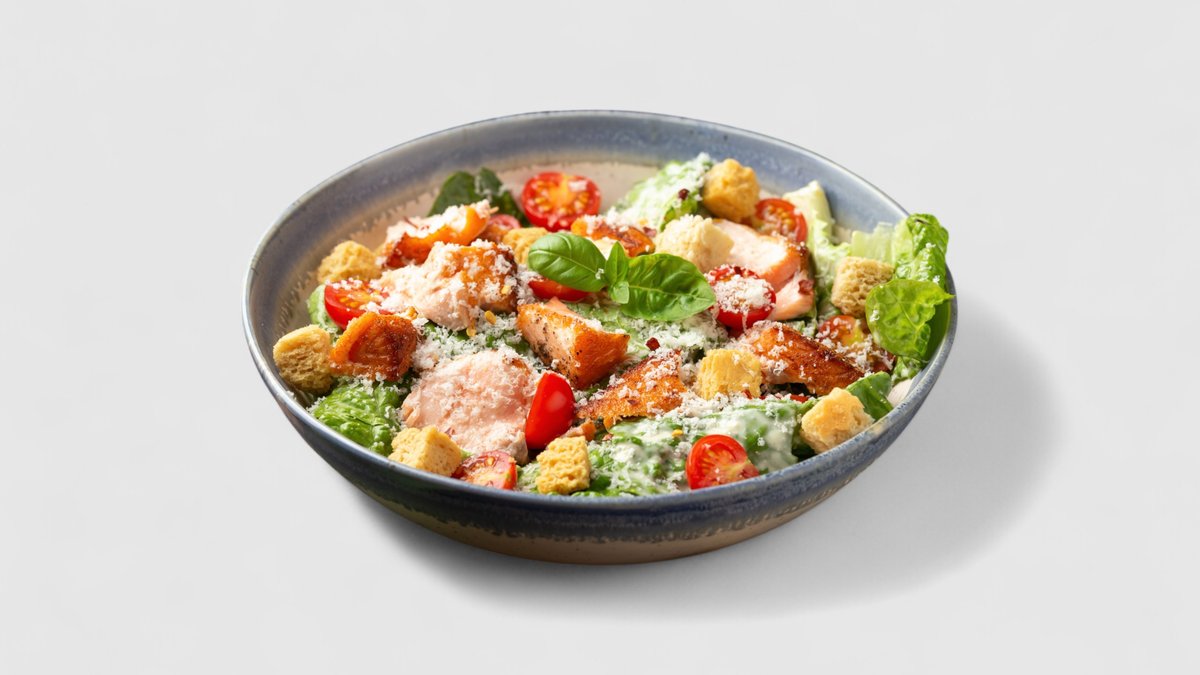 Caesar salát s grilovanými kousky lososa
