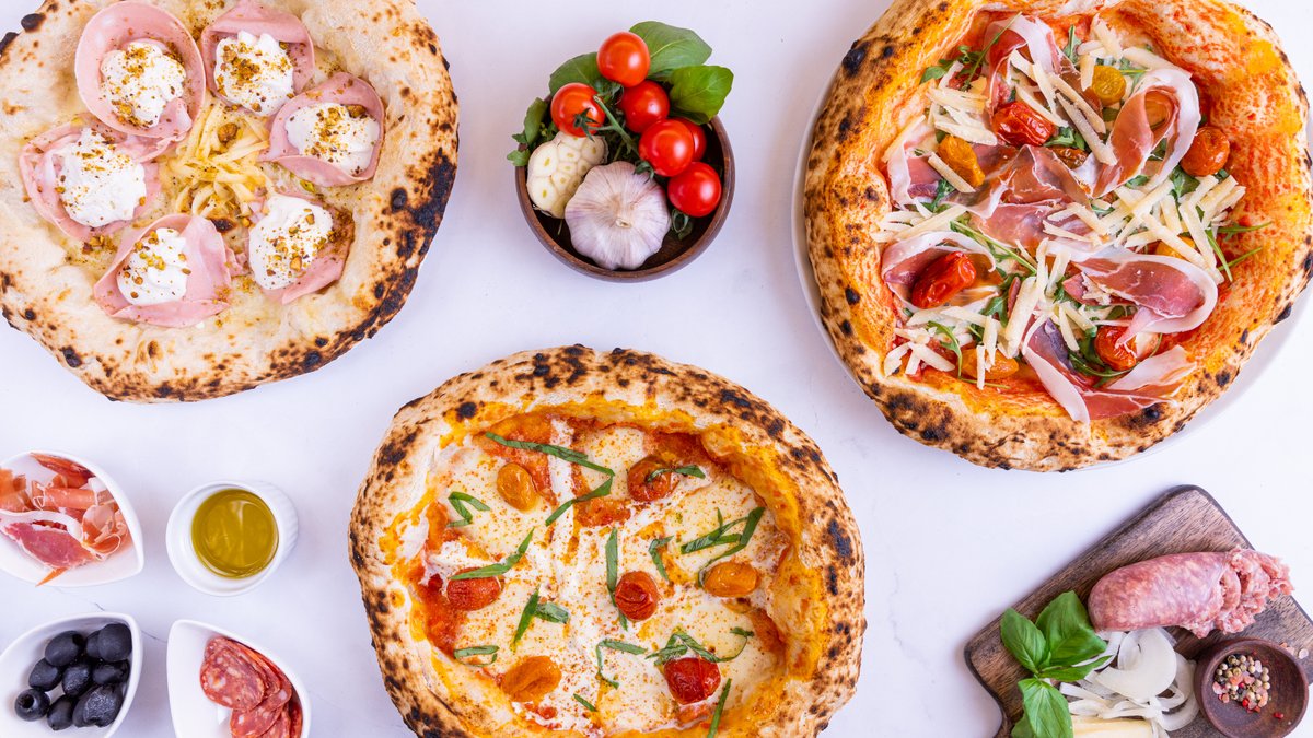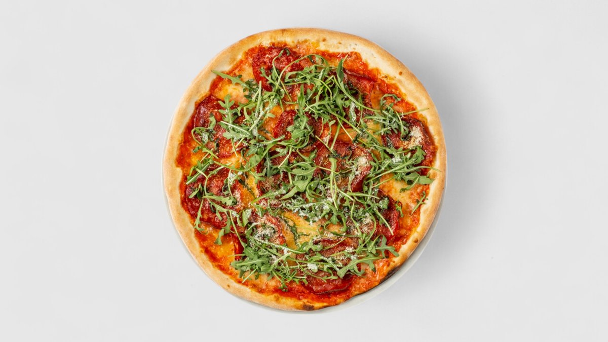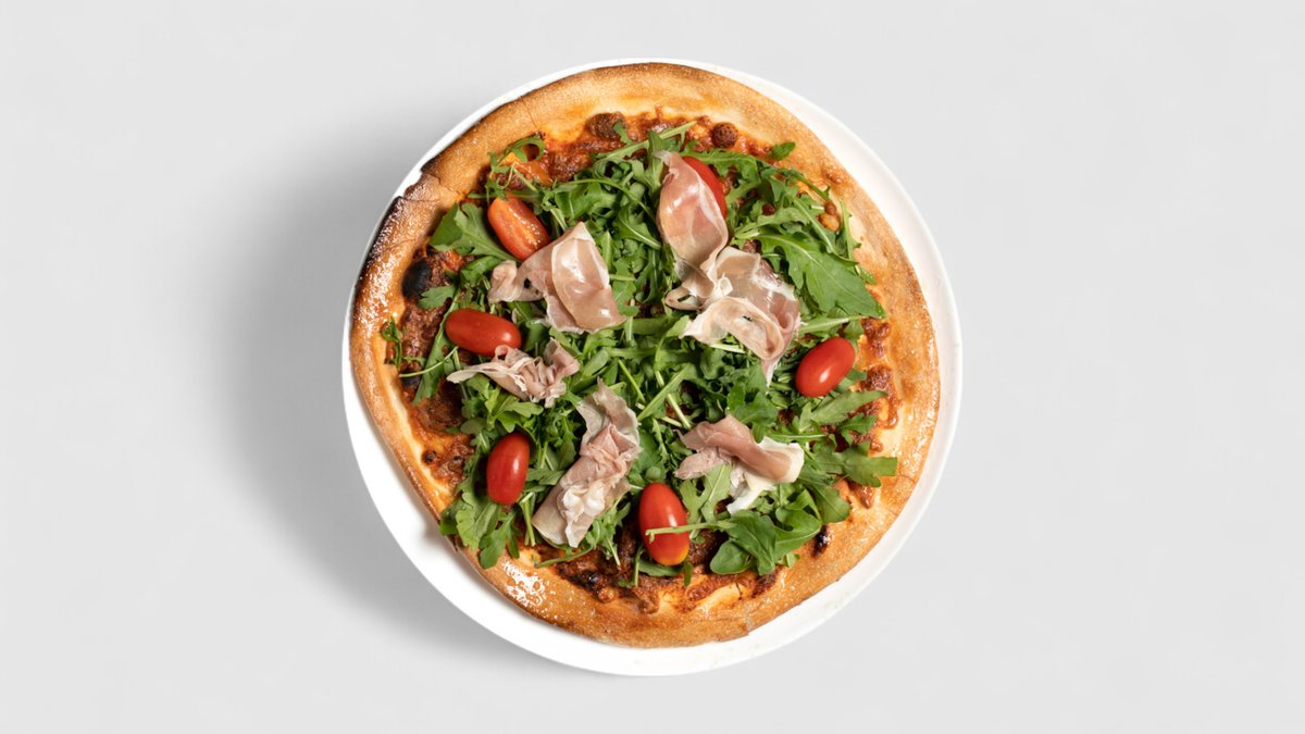 Rajčatová omáčka, sýr, sušená šunka, parmazán, oregano, rukola | Alergeny: 1,5,6,7