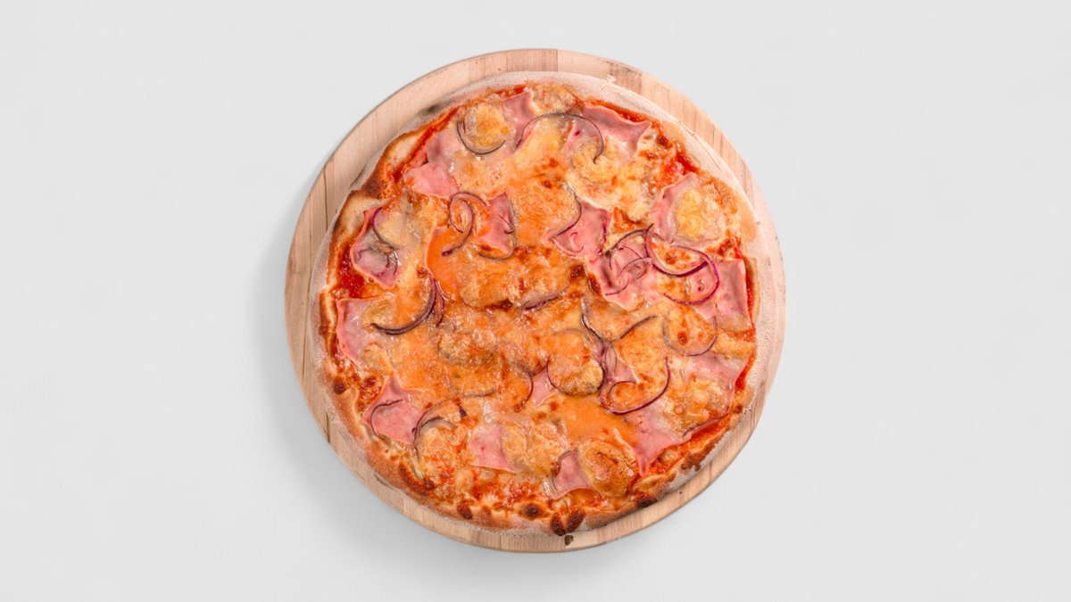 Rajčatová omáčka, sýr, šunka, ananas | Alergeny: 1,5,6,7