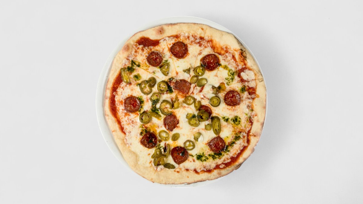 Rajčatová omáčka, sýr, salám, jalapeňos | Alergeny: 1,5,6,7 🌶️🌶️