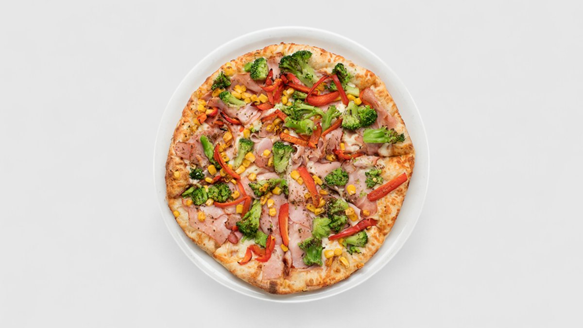 Rajčatová omáčka, sýr, brokolice, šunka, niva, feferonky, oregáno | Alergeny: 1,5,6,7,10,11