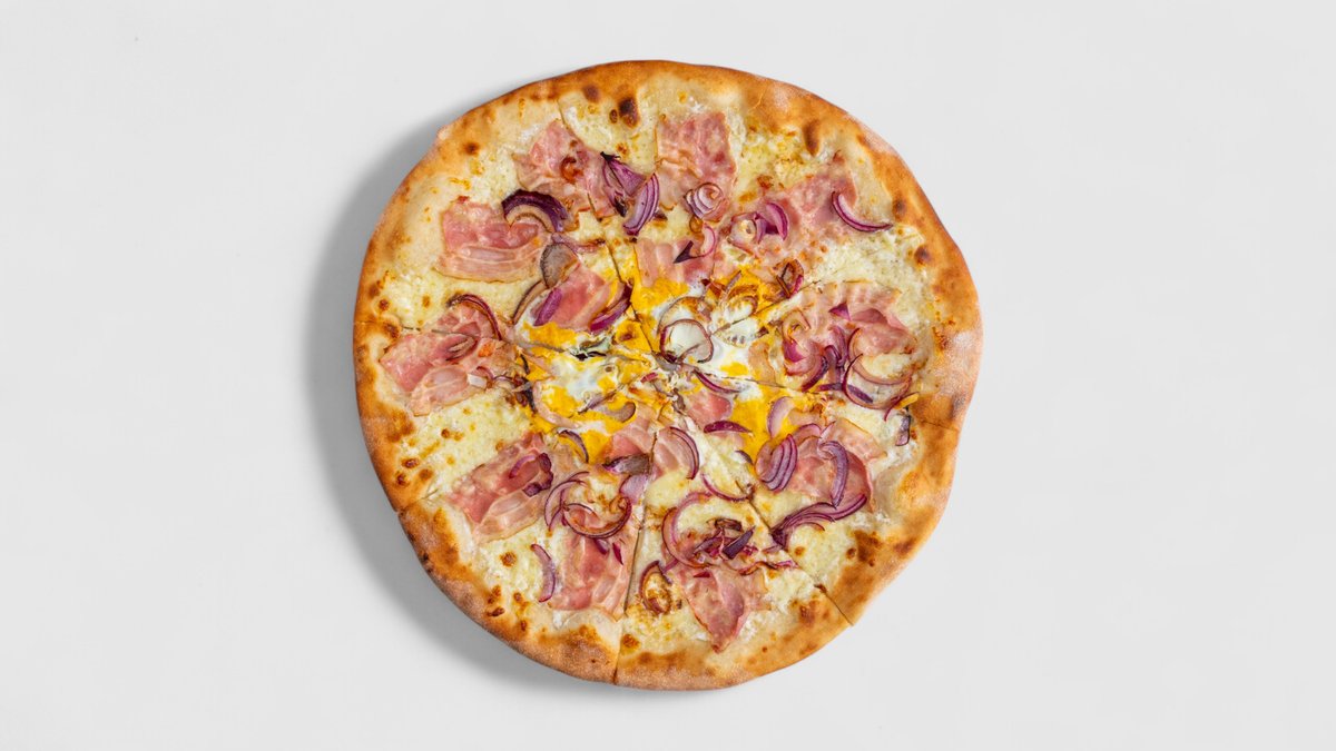 Rajčatová omáčka, sýr, cibule, šunka, vejce, bazalka | Alergeny: 1,3,5,6,7