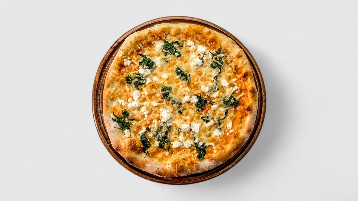 Rajčatová omáčka, sýr, čerstvá rajčata, slanina, špenát, smetana, česnek | Alergeny: 1,5,6,7