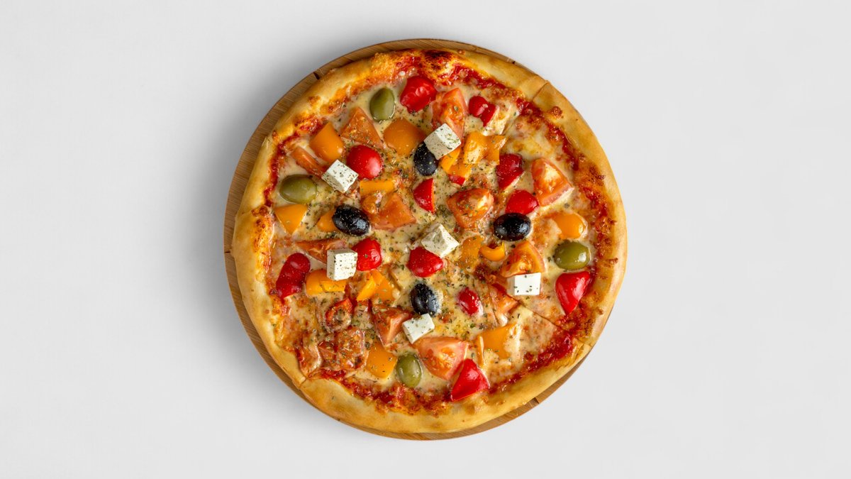 Rajčatová omáčka, sýr, šunka, balkánský sýr, čerstvá rajčata, olivy | Alergeny: 1,5,6,7