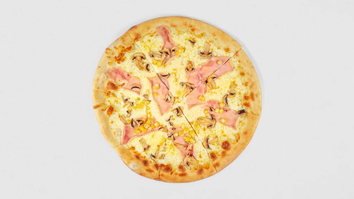 Rajčatová omáčka, sýr, šunka, žampiony, oregano | Alergeny: 1,5,6,7
