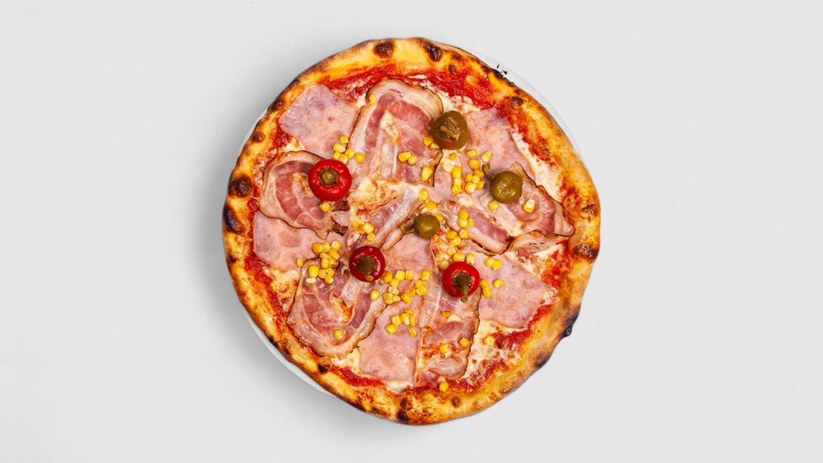 Rajčatová omáčka, sýr, šunka, oregano | Alergeny: 1,5,6,7