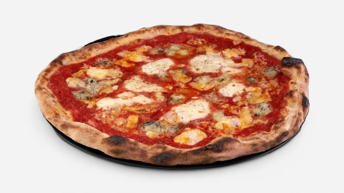 rajčata San Marzano, Mozzarella fior di latte, Parmigiano Reggiano, Pecorino Romano, Gorgonzola Piccante, Gorgonzola Riserva Dolce, Taleggio, čerstvě mletý pepř