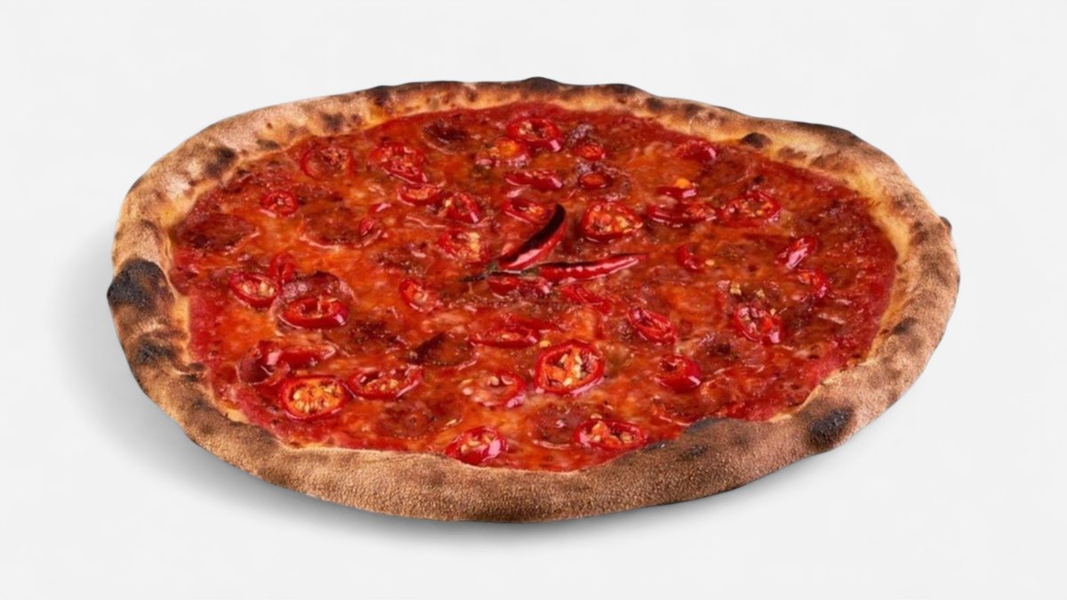 rajčata San Marzano, mozzarella fior di latte, Ventricina picante, Napoli piccante, fresh chilli, dry chilli, pepř