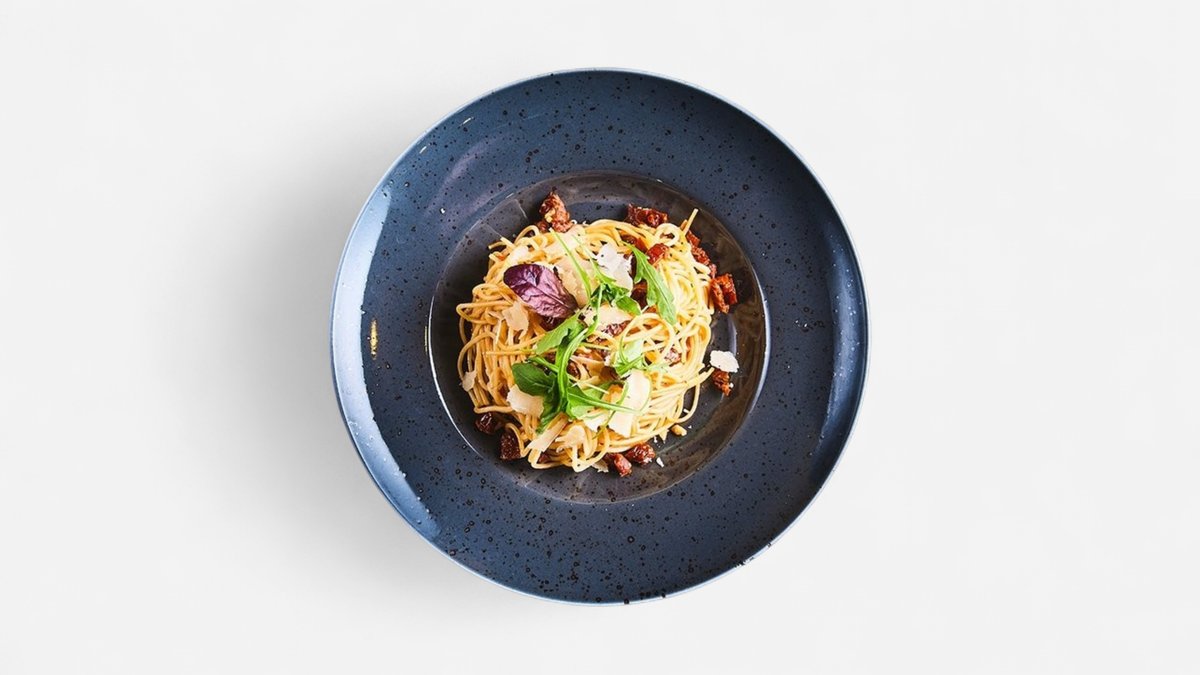 s česnekem, chilli papričkou, sušenými rajčaty, olivovým olejem a parmezánem