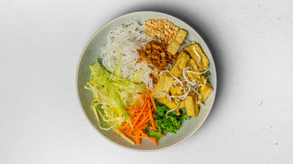 rýžové nudle se smaženými závitky 3ks a zeleninou, omáčka