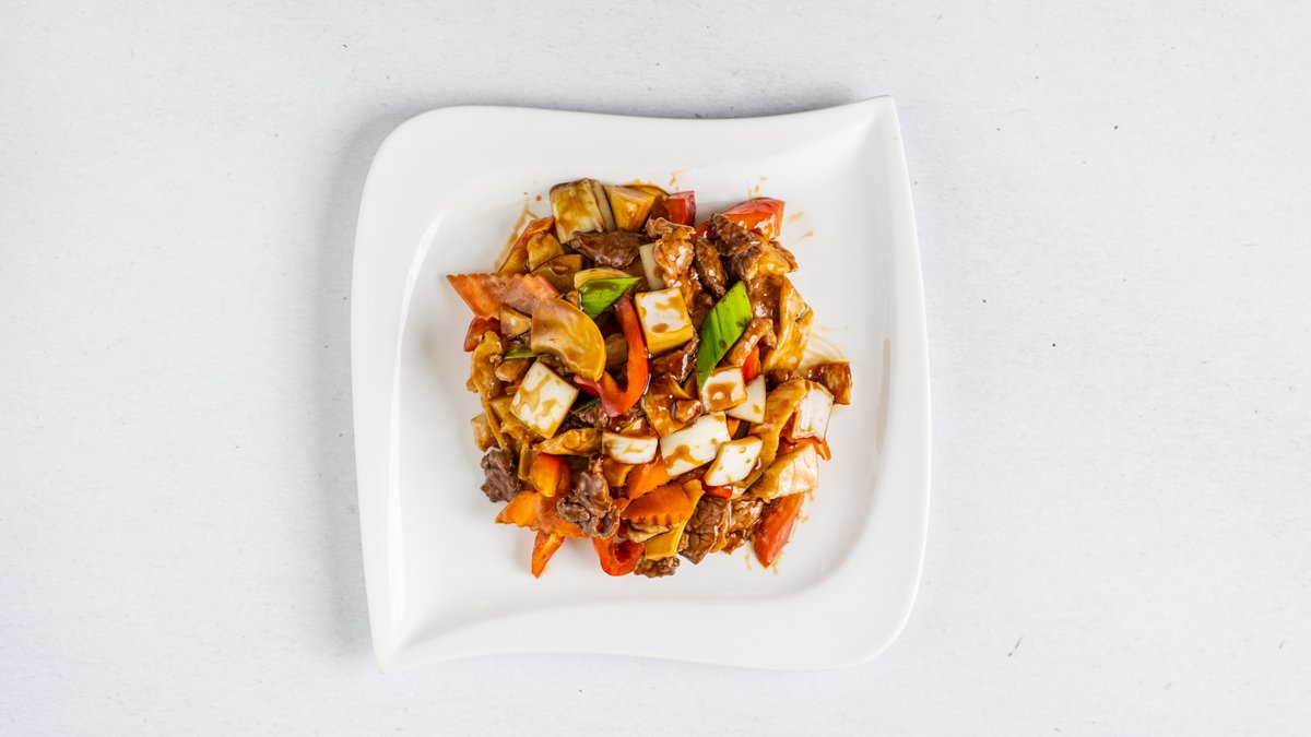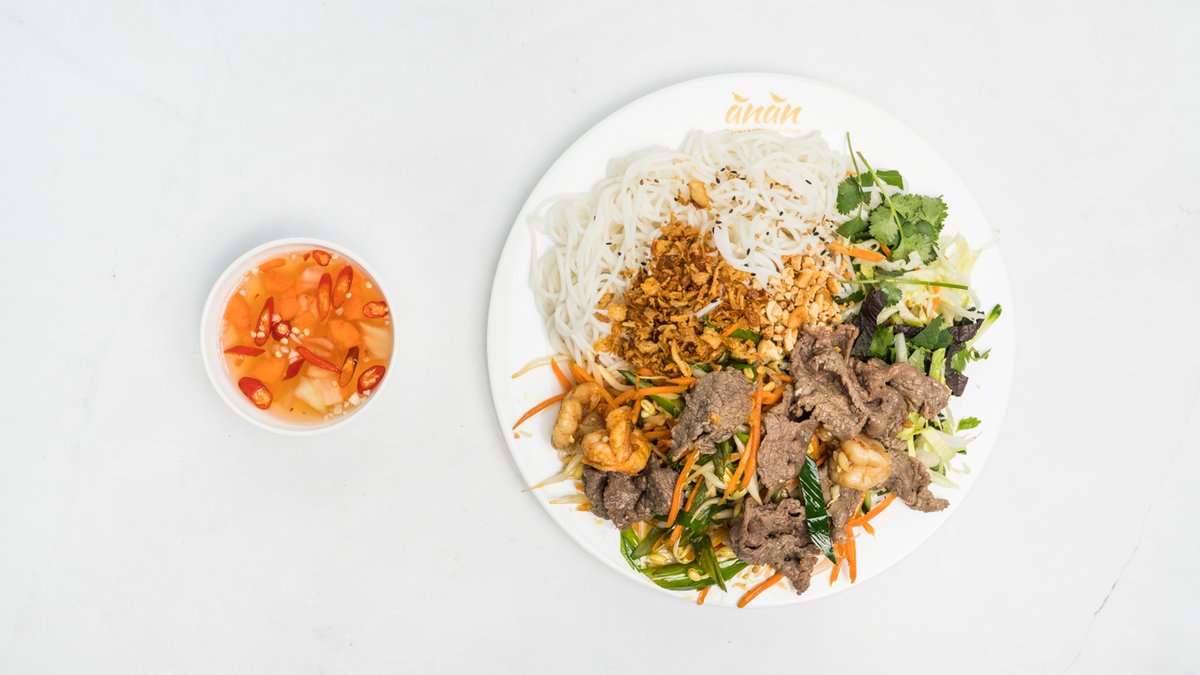 rýžové nudle s hovězím masem a zeleninou, omáčka