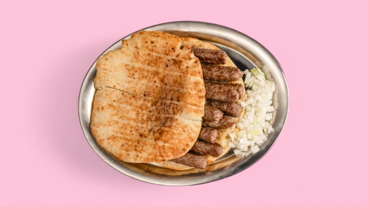 Domácí chléb , Čevabčići hovězí maso 120g , cibule