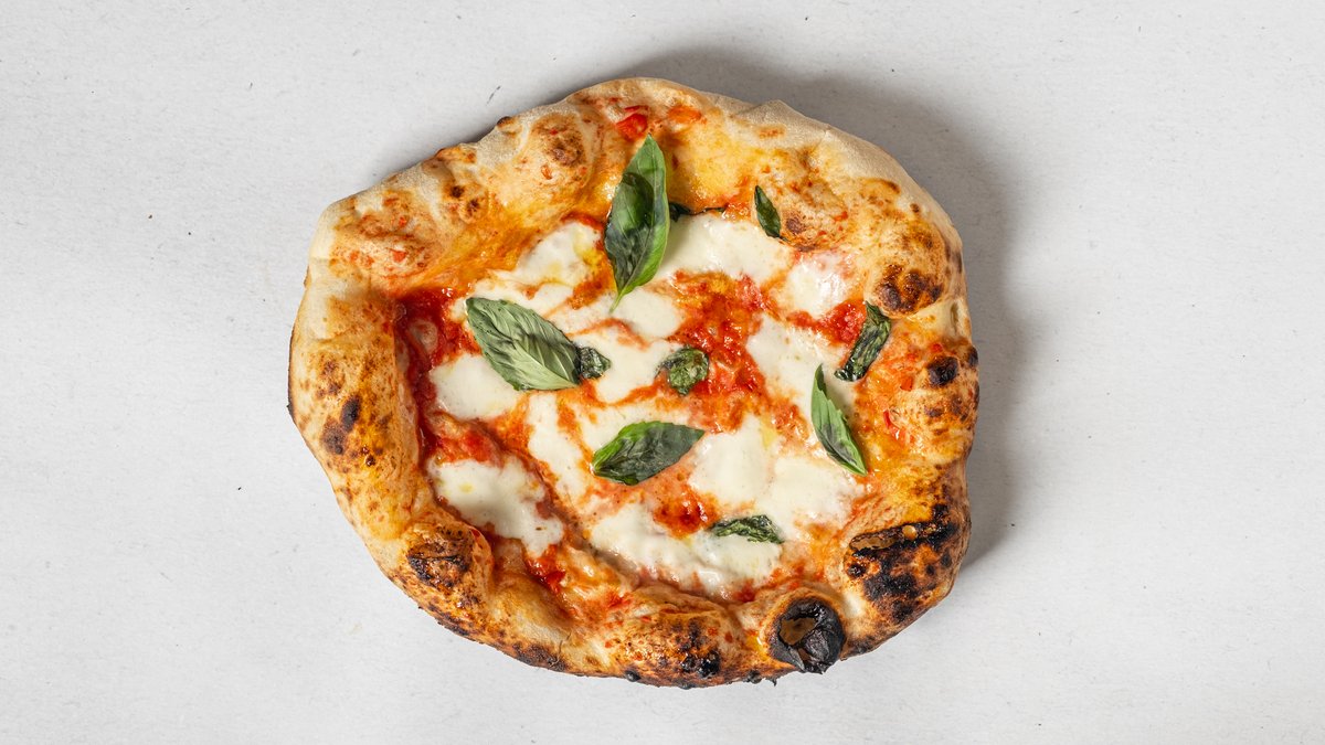 rajčatový základ, nakládaná mozzarella, parmazán, olivový olej, bazalka