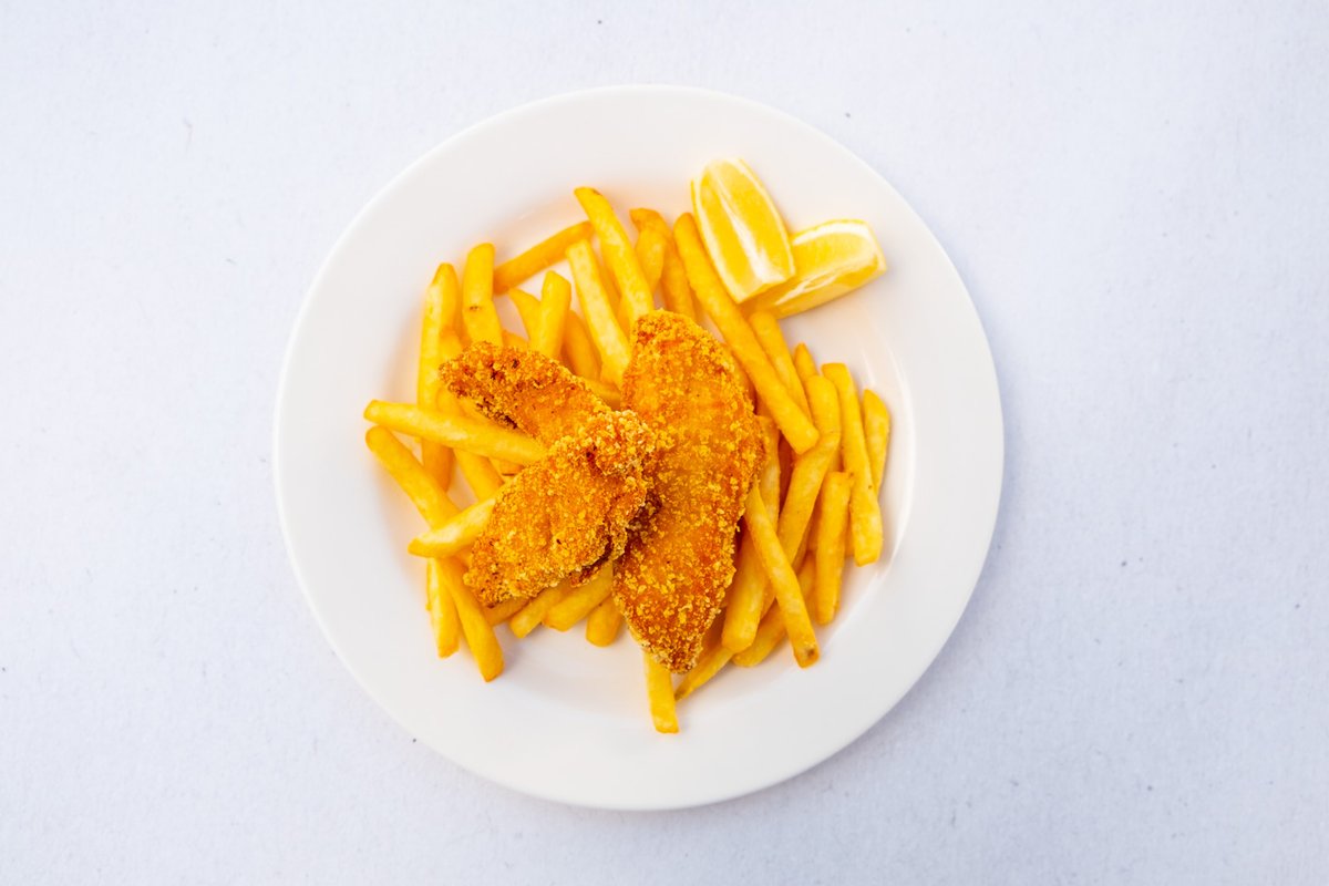 Máslová bulka, 4 ks stripsů, polníček, rajče, francouzský dresing, majonéza