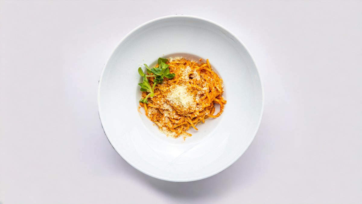 ragů z mletého masa, kořenové zeleniny, čerstvých rajčat a bazalky, Parmigiano Reggiano