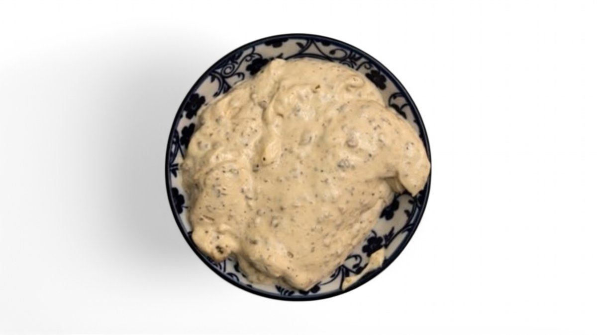 namíchaný s cibulí, hořčicí, kečupem, worcesterovou omáčkou, pasterizovaným žloutkem, solí a pepřem, podávaný s nakládanými beraními rohy, červenou cibulí, česnekem a 6ks topinek.