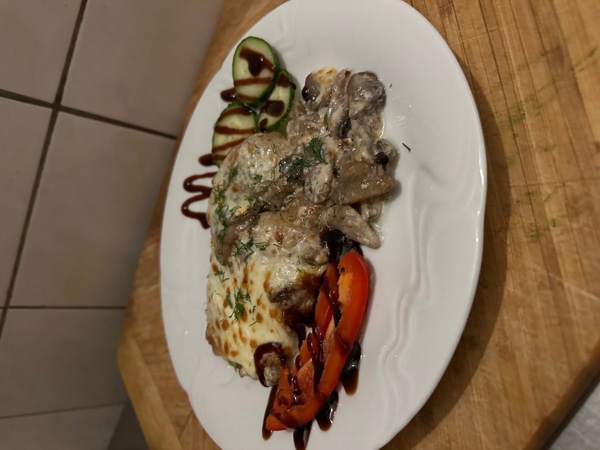 250g, zapečeny s houbami a se sýrem