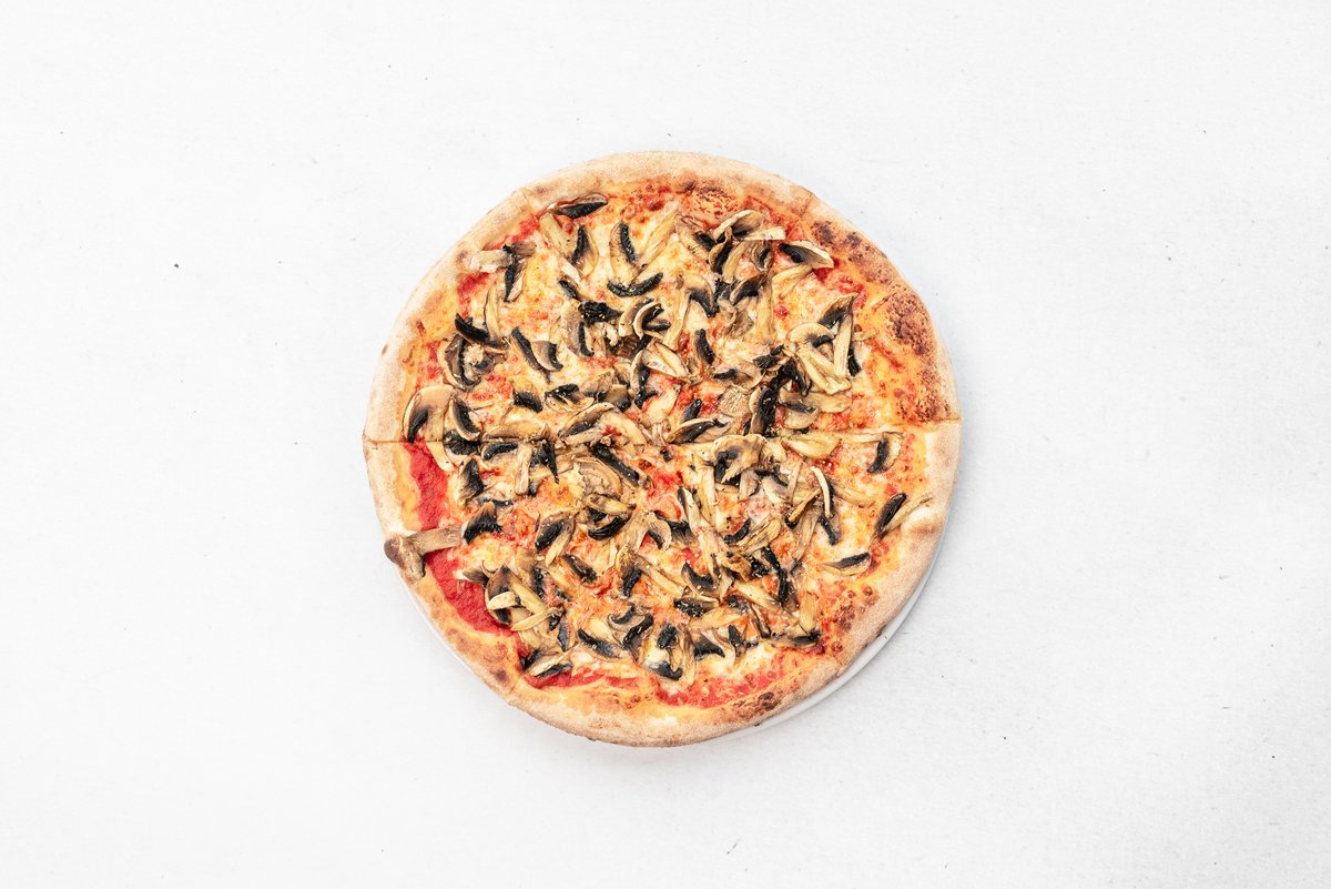 sugo, mozzarella, žampiony, černé olivy, prosciutto, artyčoky