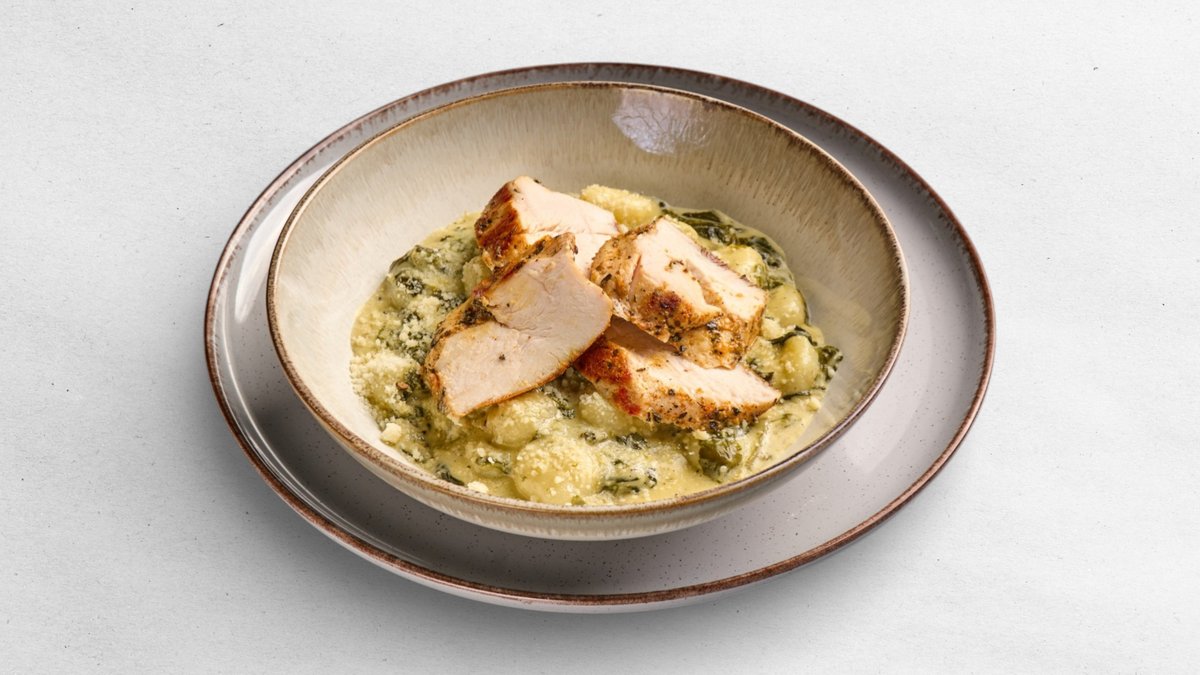 špenátem se smetanou a česnekem, parmazán