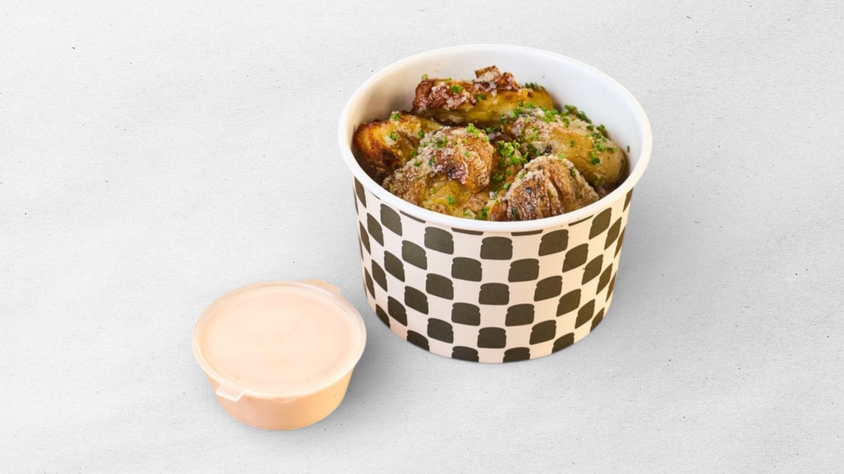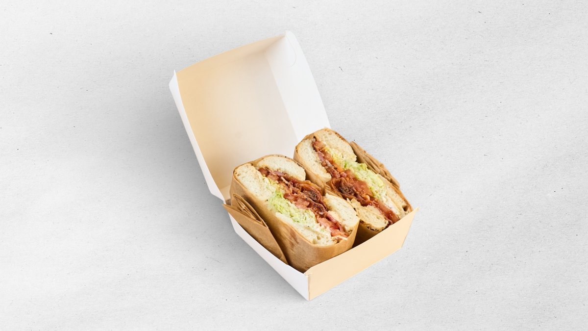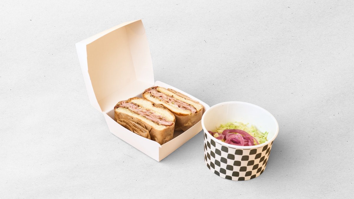 bunska, mortadella, provolone, hořčično-hrubozrnná mayo, salátek s pomerančovým vinaigrette