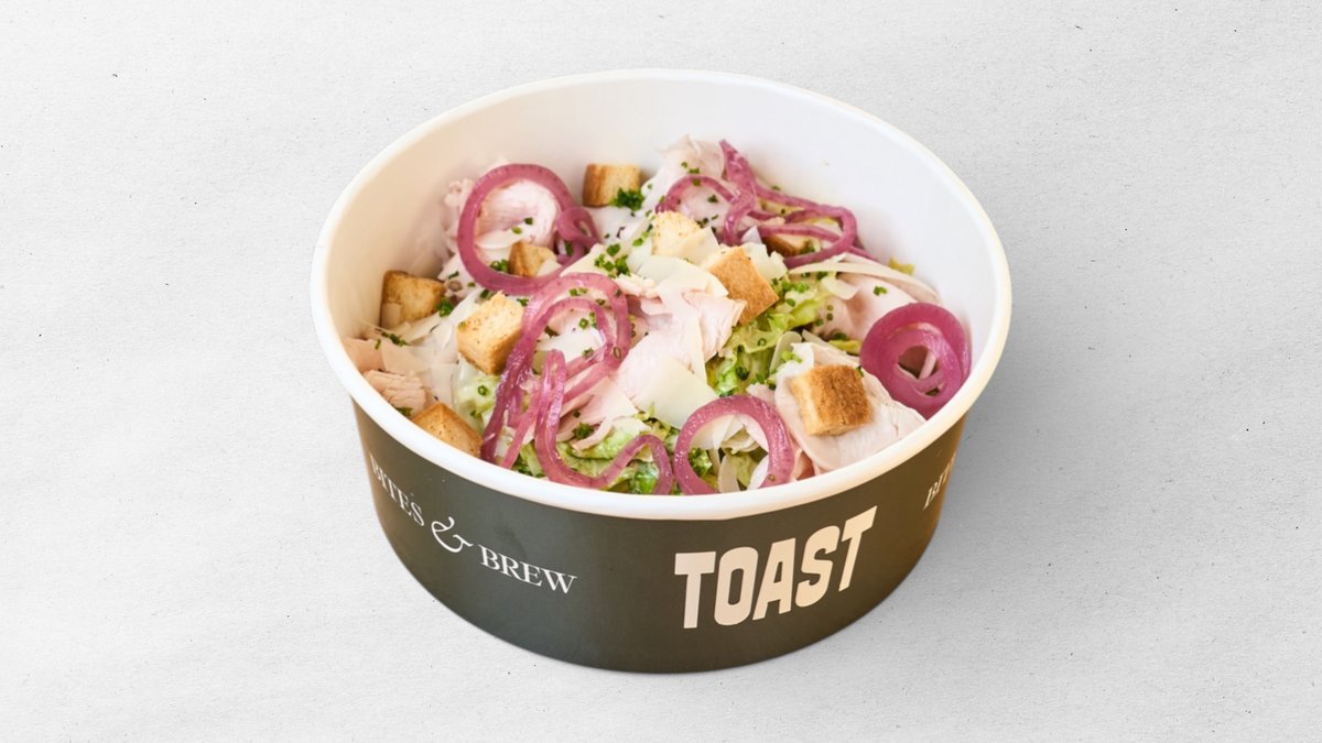 římský salát, krutony, krůta, ančovička, parmezán, caesar dresing