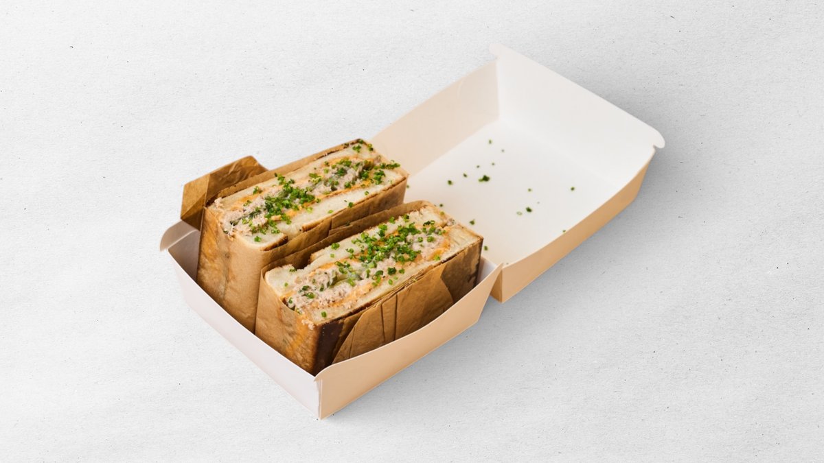 toast, tuňák, cheddar, okurka, šalotka, pažitka, řapíkatý celer, jalapeño