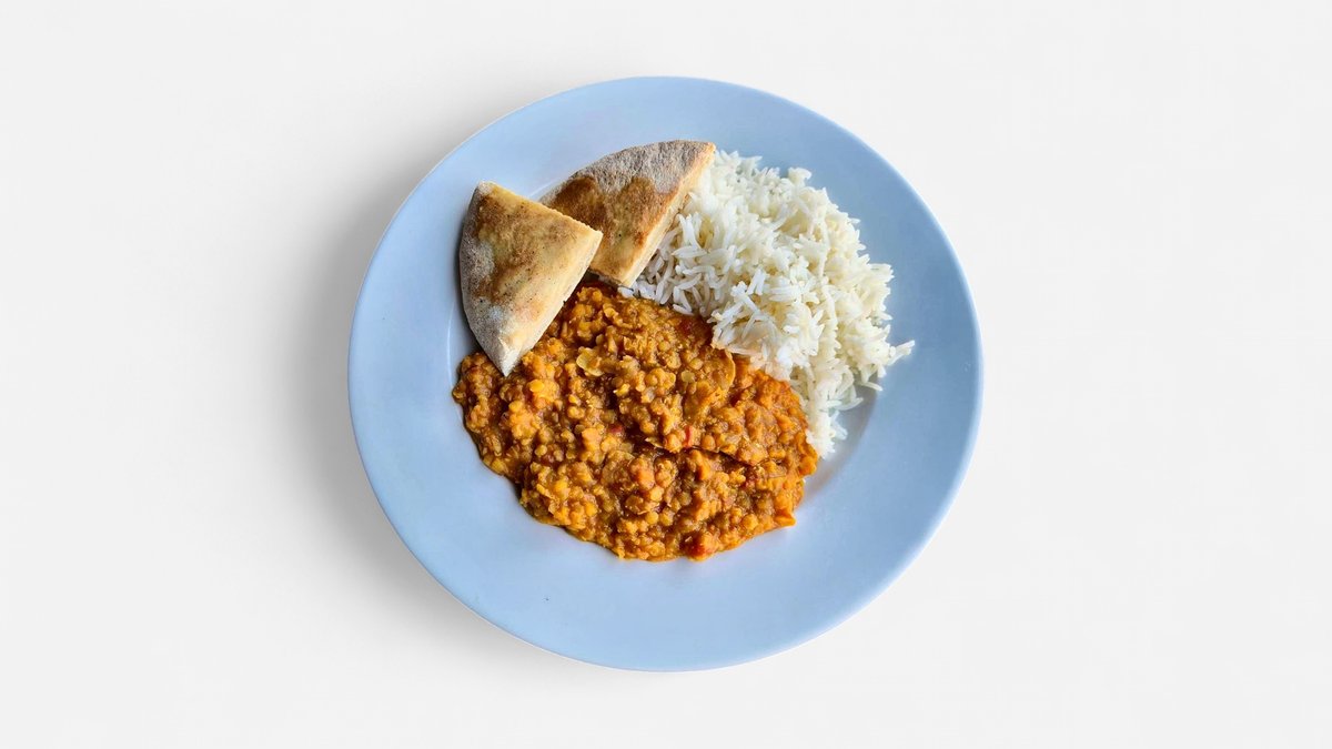 Indický dhal s basmati rýží a chlebem naan s cibulí
