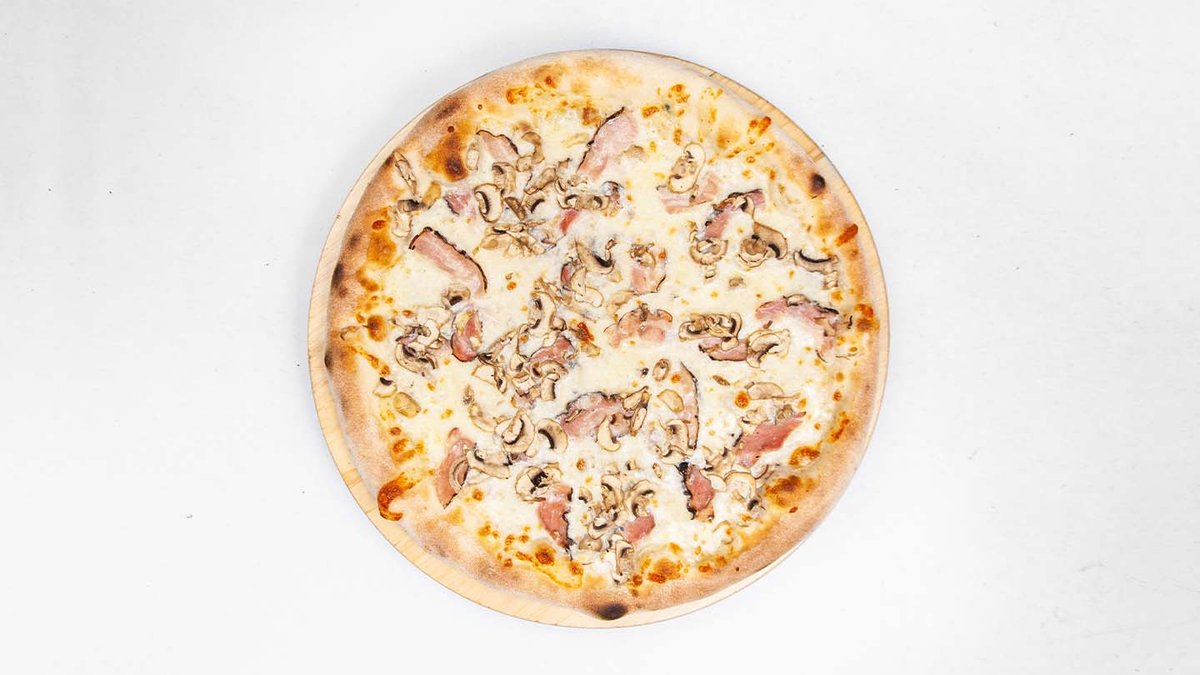 šunka, čerstvé žampiony, artičoky, černé olivy, mozzarella, oregano, A. 1,7
