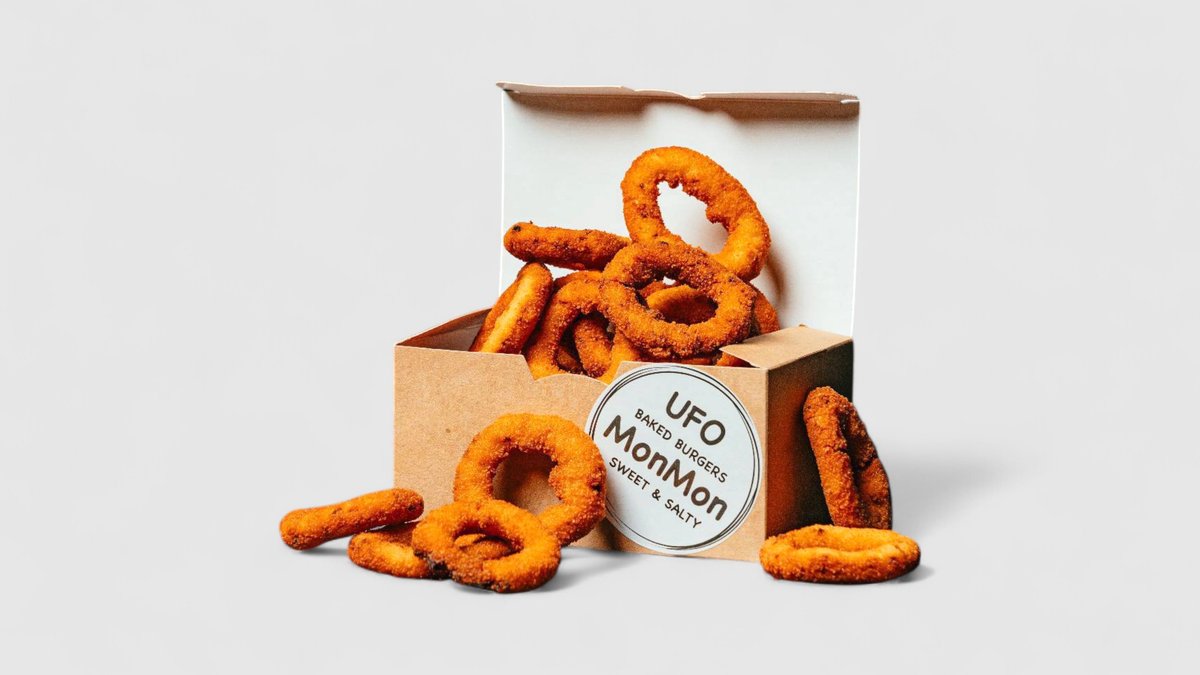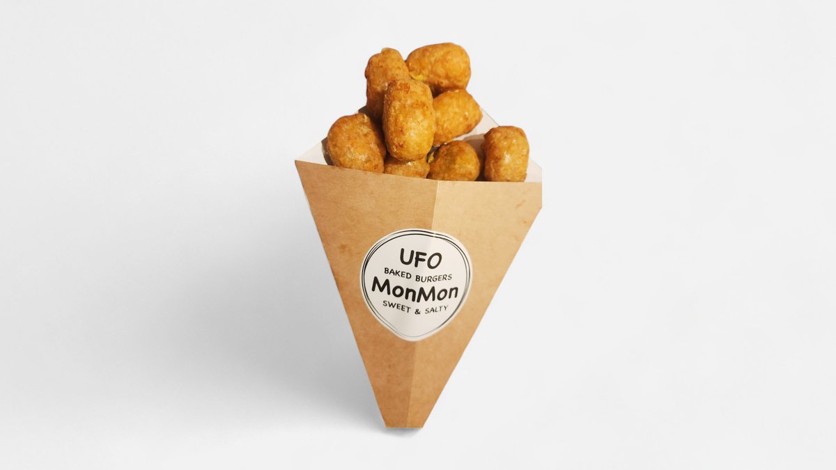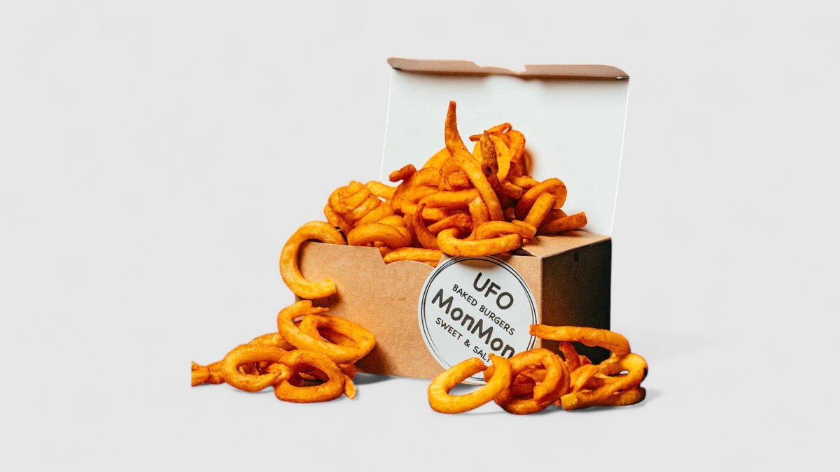 UFO smažák (máslová bulka, domácí ďábelka, ledový salát, pečená slanina, rajče, smažený sýr) + hranolky + domácí ďábelka V ceně je zahrnut obalový materiál 10 Kč