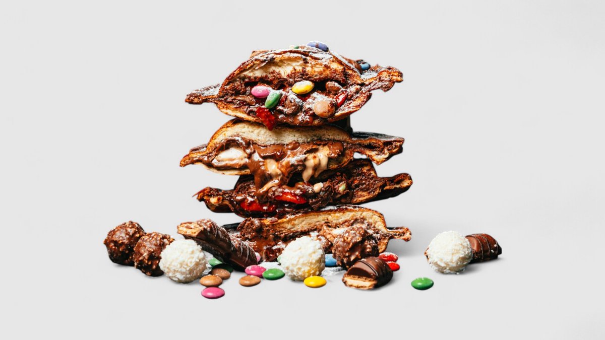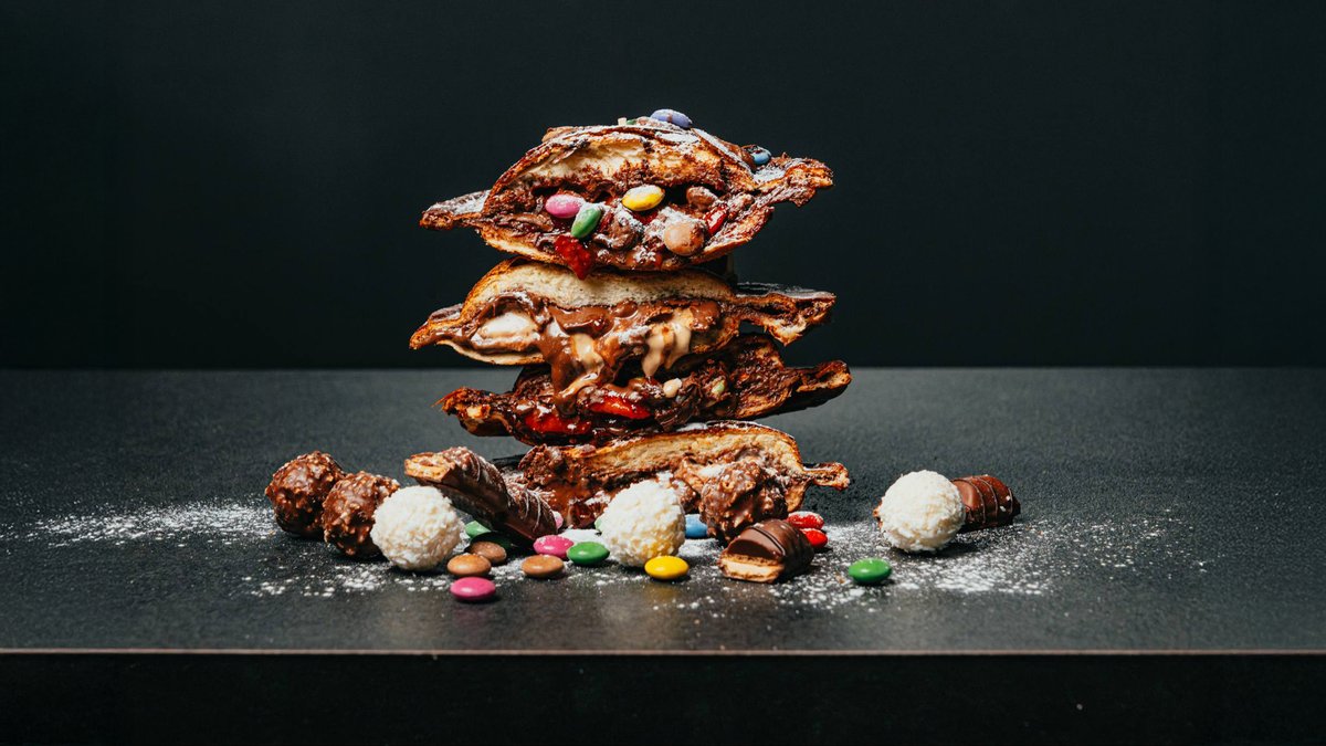 Máslová bulka, nutella, vanilkový pudink, jablko vařené v badyánu, skořici, medem a hřebíčkem ,rozinky, čokoládový posyp