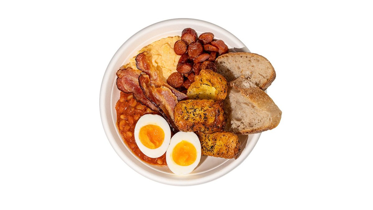 Chléb Míšenec, Míchaná vejce, Slanina, Pečené fazole v rajčatové omáčce, Okurkový salát 🍞 PEČIVO Pšeníčná mouka, žitná mouka, voda, sůl 🍳 PROTEIN Vejce volný chov, mořská sůl, máslo 🫘 EXTRA Fazole bílé, rajčatové pyré, voda, extra panenský olivový olej, česnek sušený, javorový sirup, tymián, sůl, černý pepř, sušená cibule, uzená paprika BIO cuketa, BIO kokosová amino omáčka, limetová šťáva, extra panenský olivový olej, sůl 🥒 SALÁT Okurka, sweet chilli, jablečný ocet, sůl
