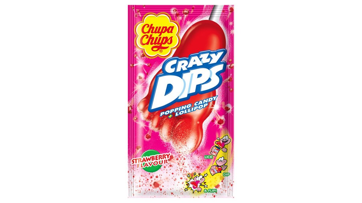 Chupa Chups Crazy Dips Drops s jahodovou příchutí s praskajicím práškem 14g