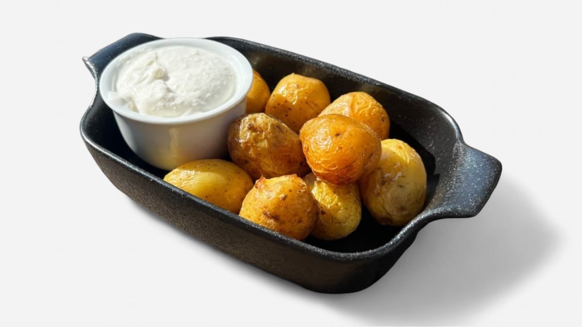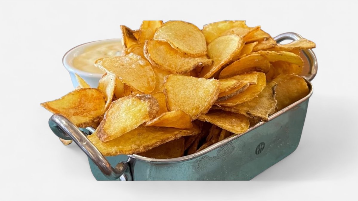 smažené bramborové chipsy, ochucené slaninovou solí, podávané s tatarskou omáčkou, 200g