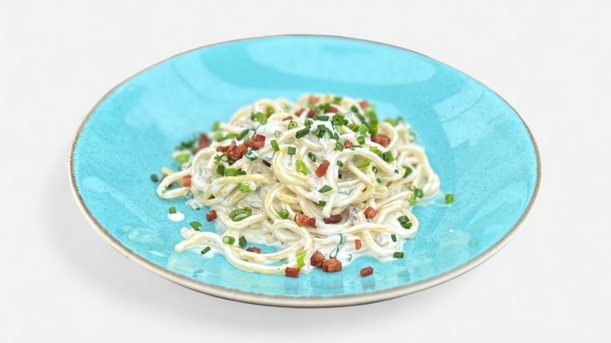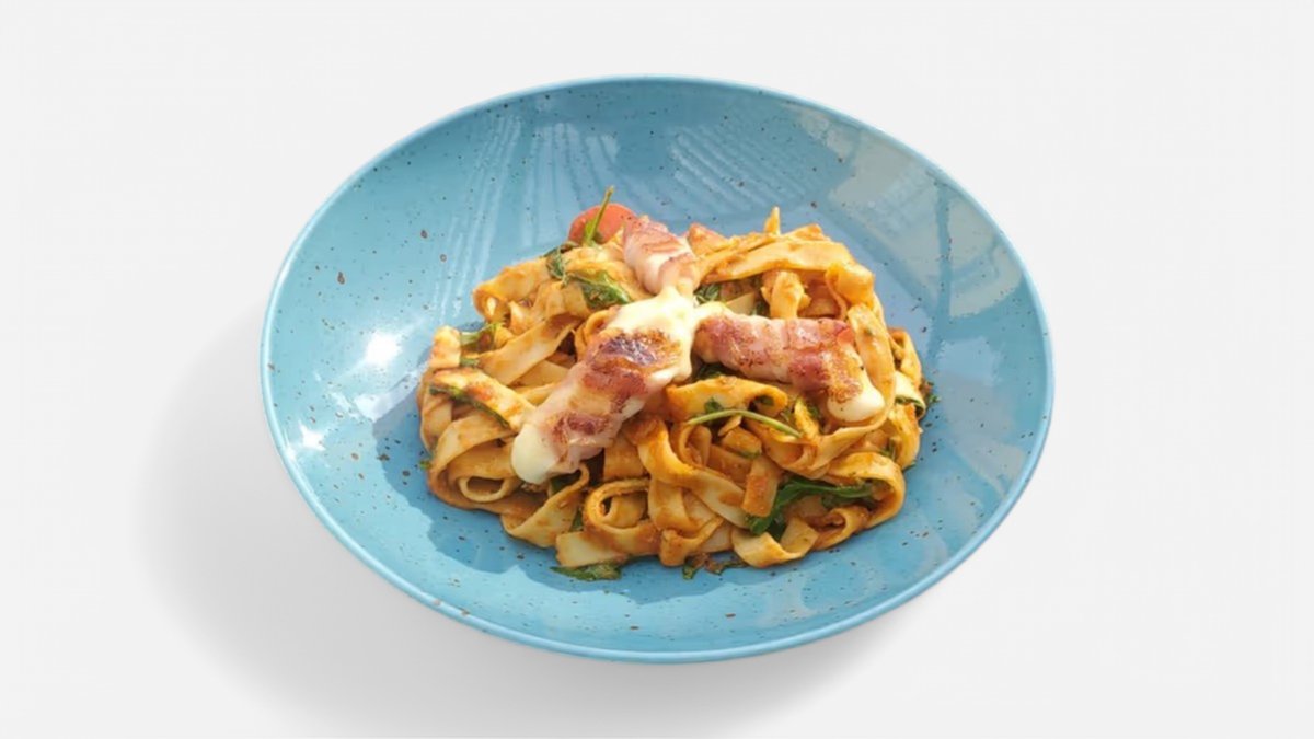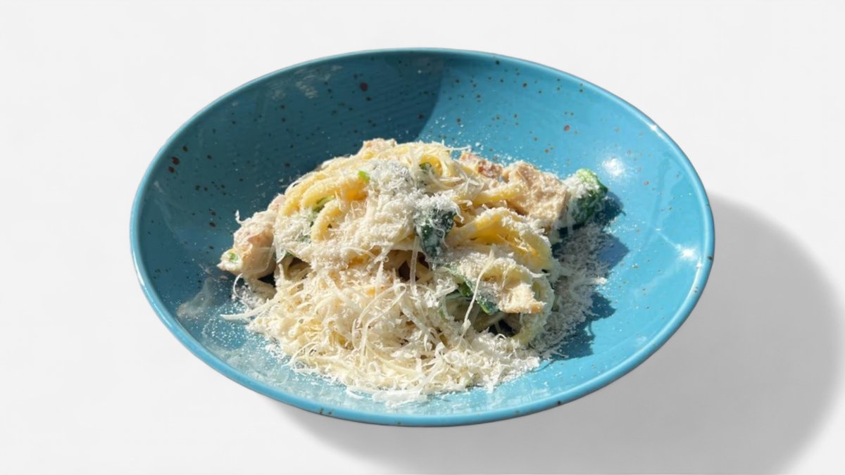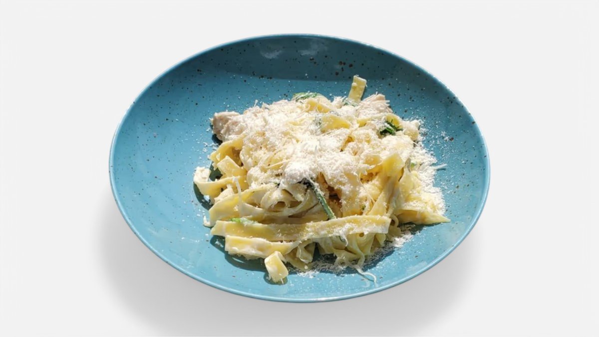 čerstvé těstoviny s kuřecím masem, listovým špenátem, smetanou a parmazánem, 300g