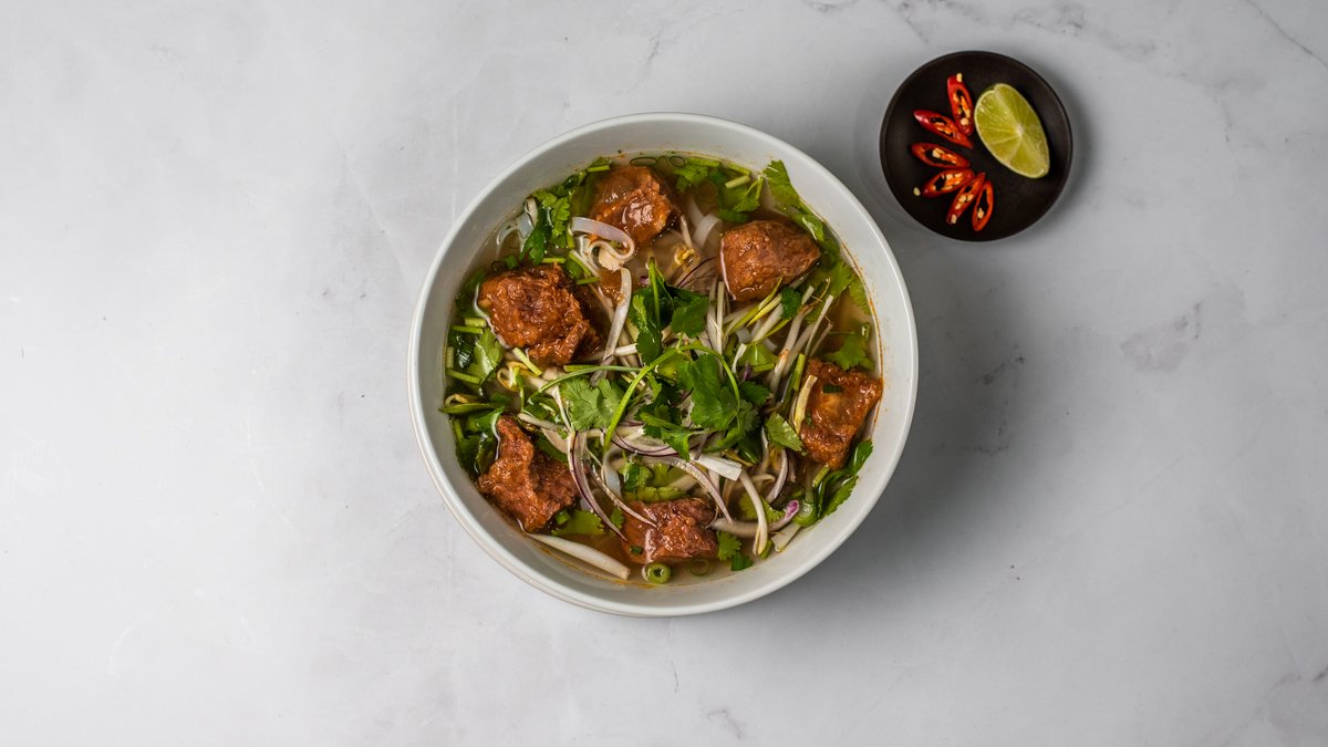 Vietnamská polévka s dušeným hovězím na červeném víně a rýžovými nudlemi