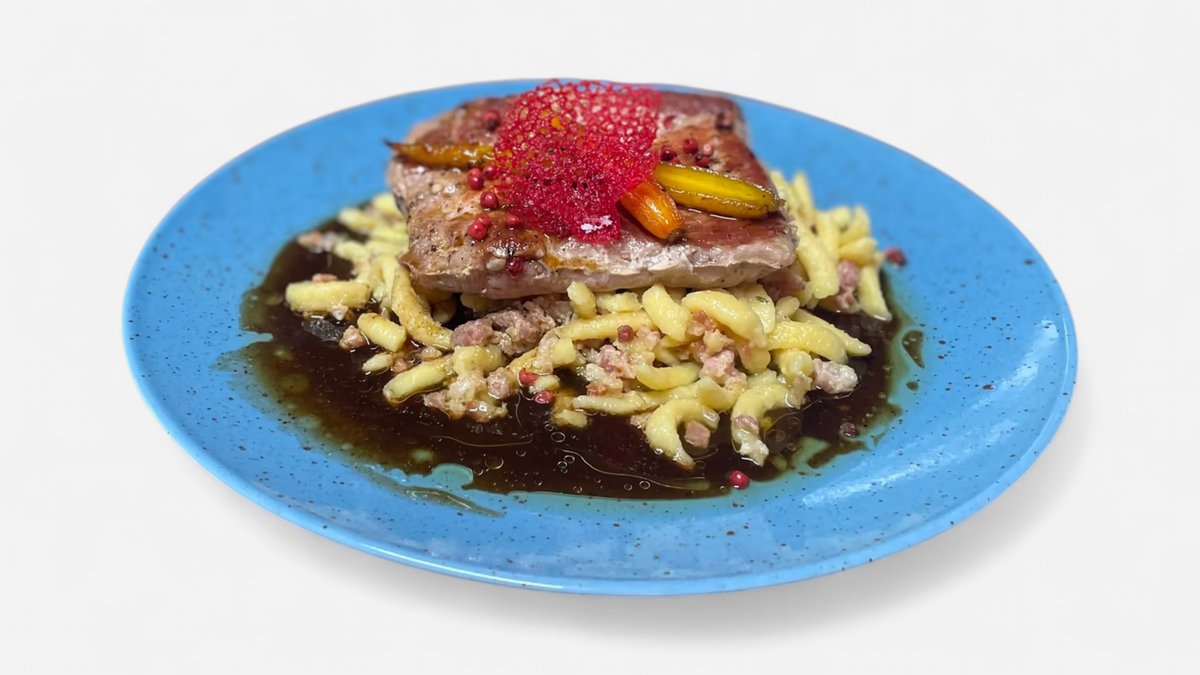 restované rakouské špecle s anglickou slaninou a smetanou