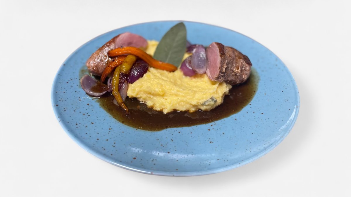 kukuřičná polenta s mladou cibulkou na másle, karamelizovaná baby karotka