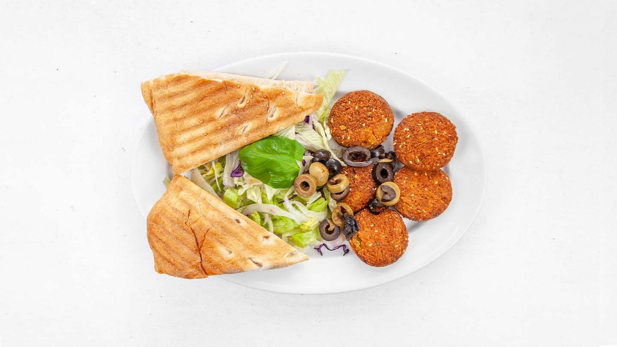 3ks falafel, zelenina, turecký chléb, dresink