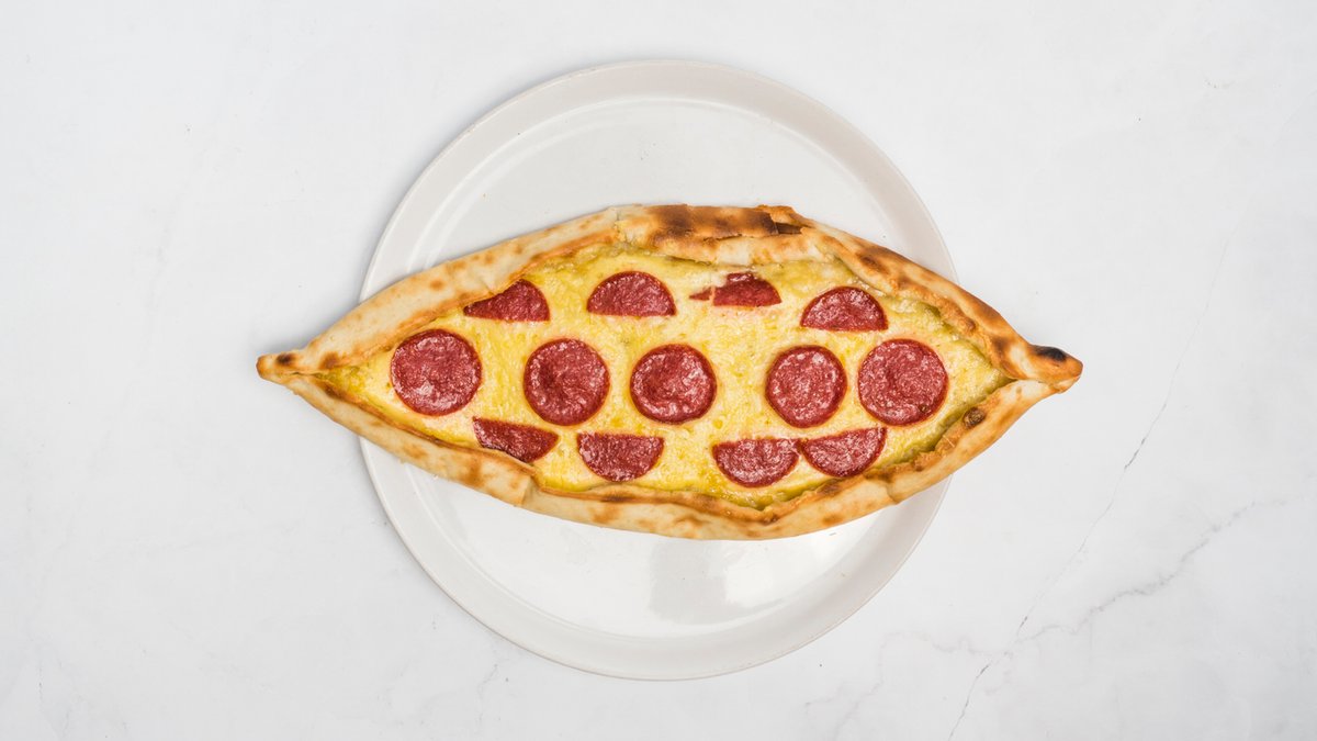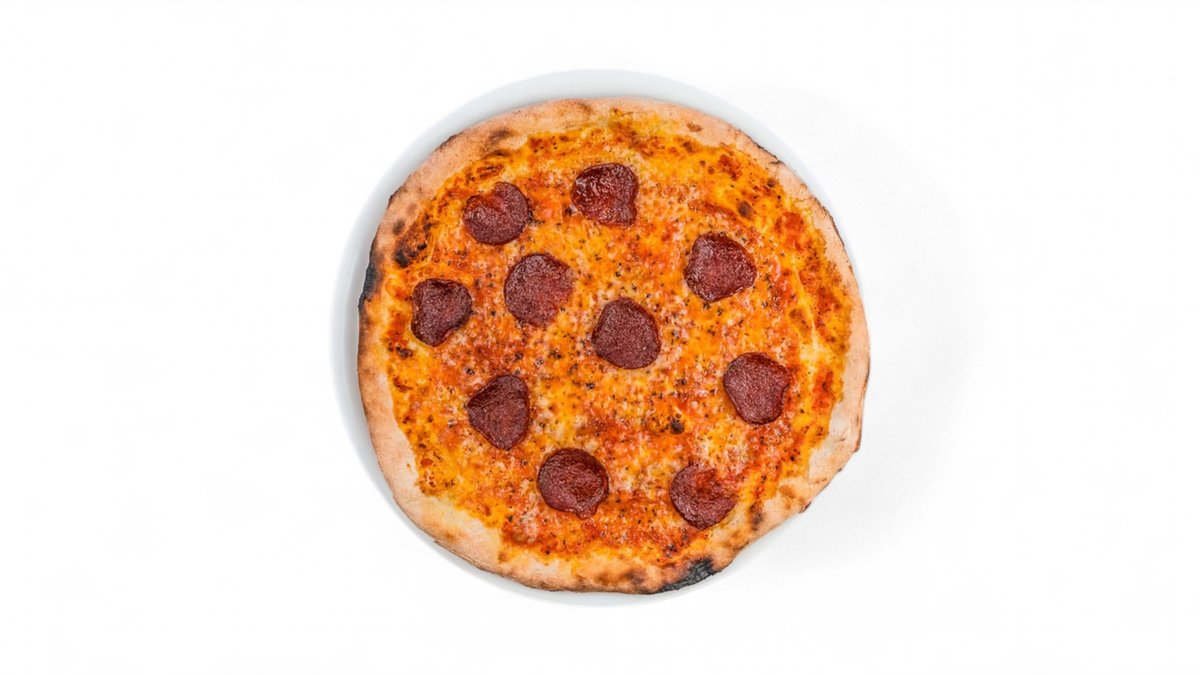 rajčatová omáčka, salám, mozzarella s velkou pizzou