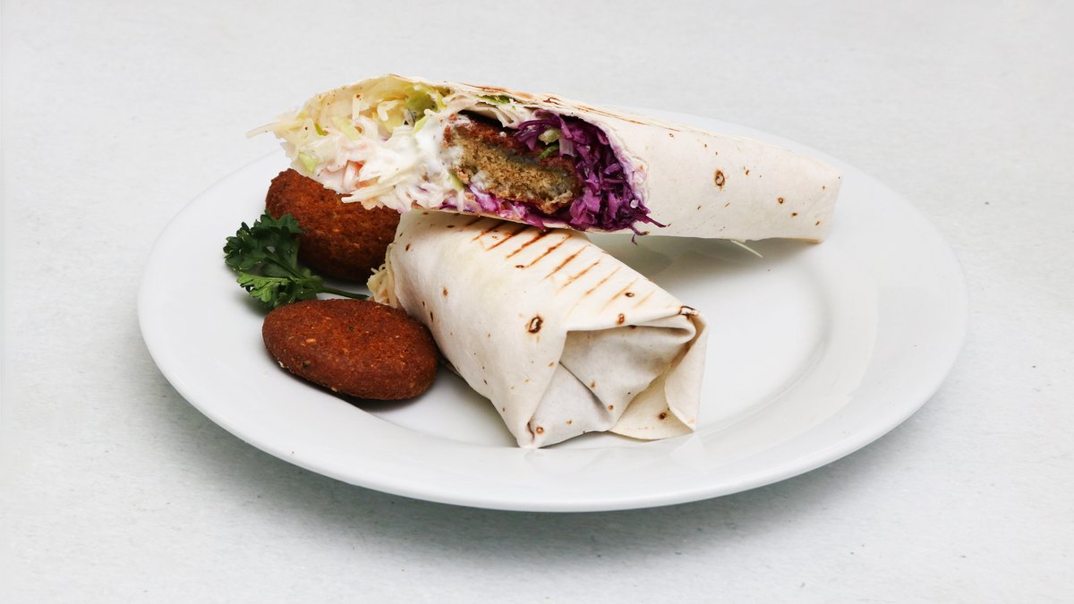 4ks falafel, sýr, zelenina, tortilla, dresink