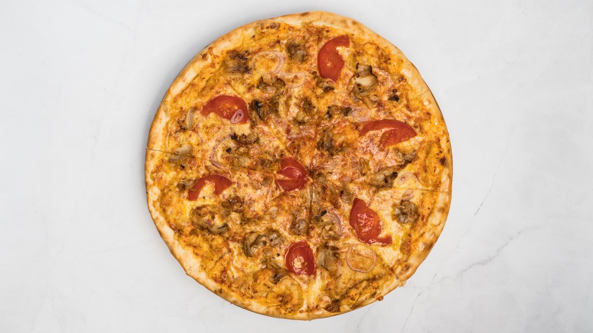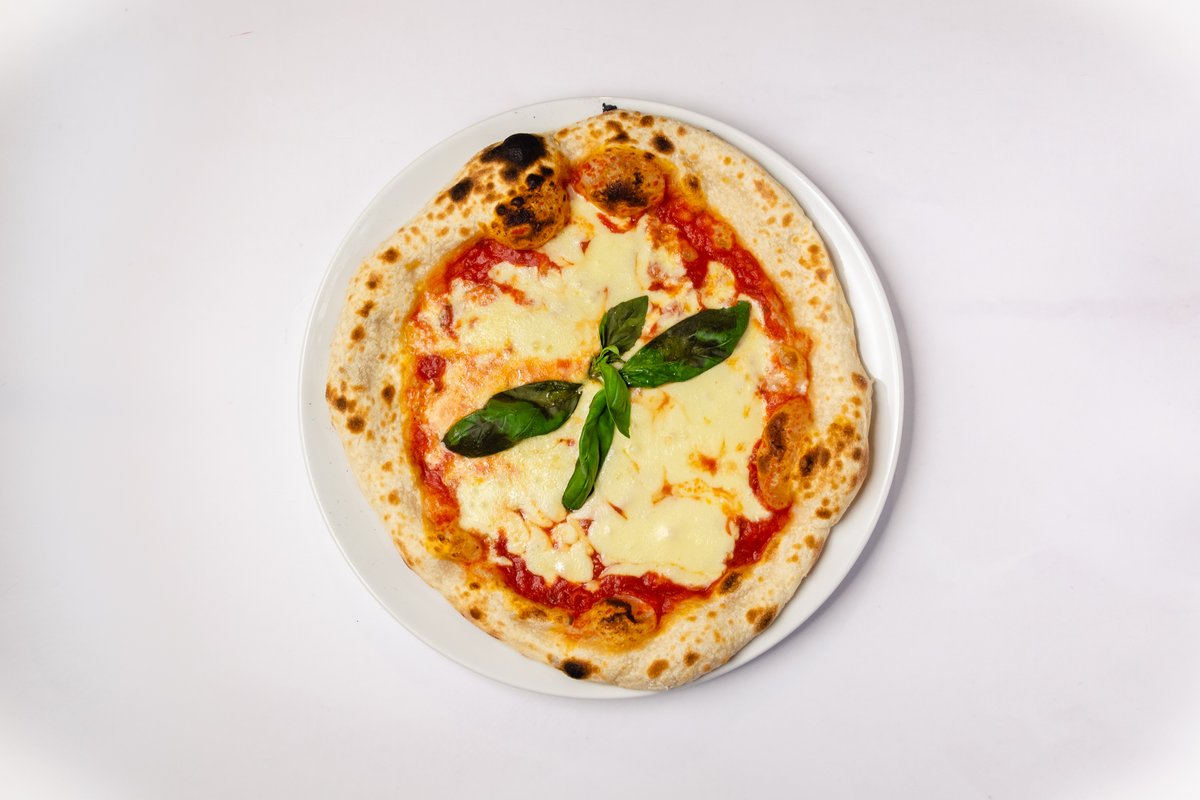 rajčatová omáčka, bazalka, mozzarella velkou pizzou
