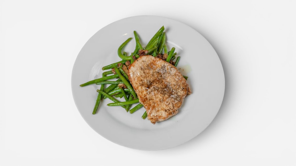 Kuřecí prso 200g na fazolkách 100g se slaninou a česnekem