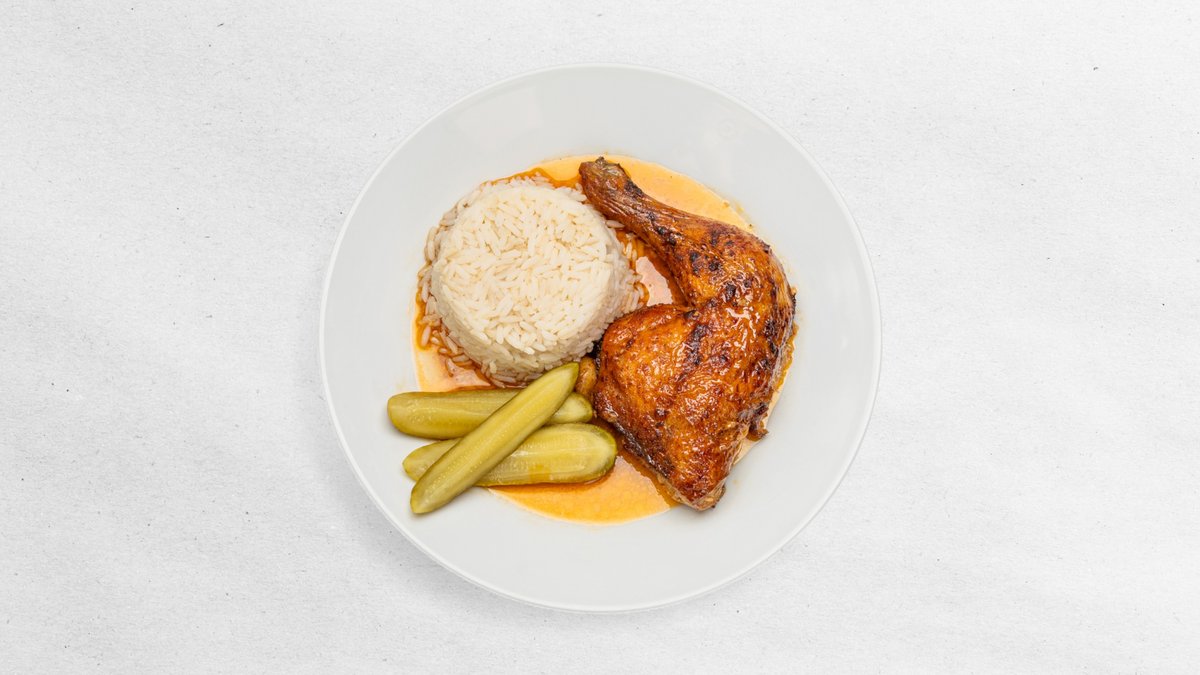 400g Kuřecí čtvrtka s dušenou rýží a okurkou