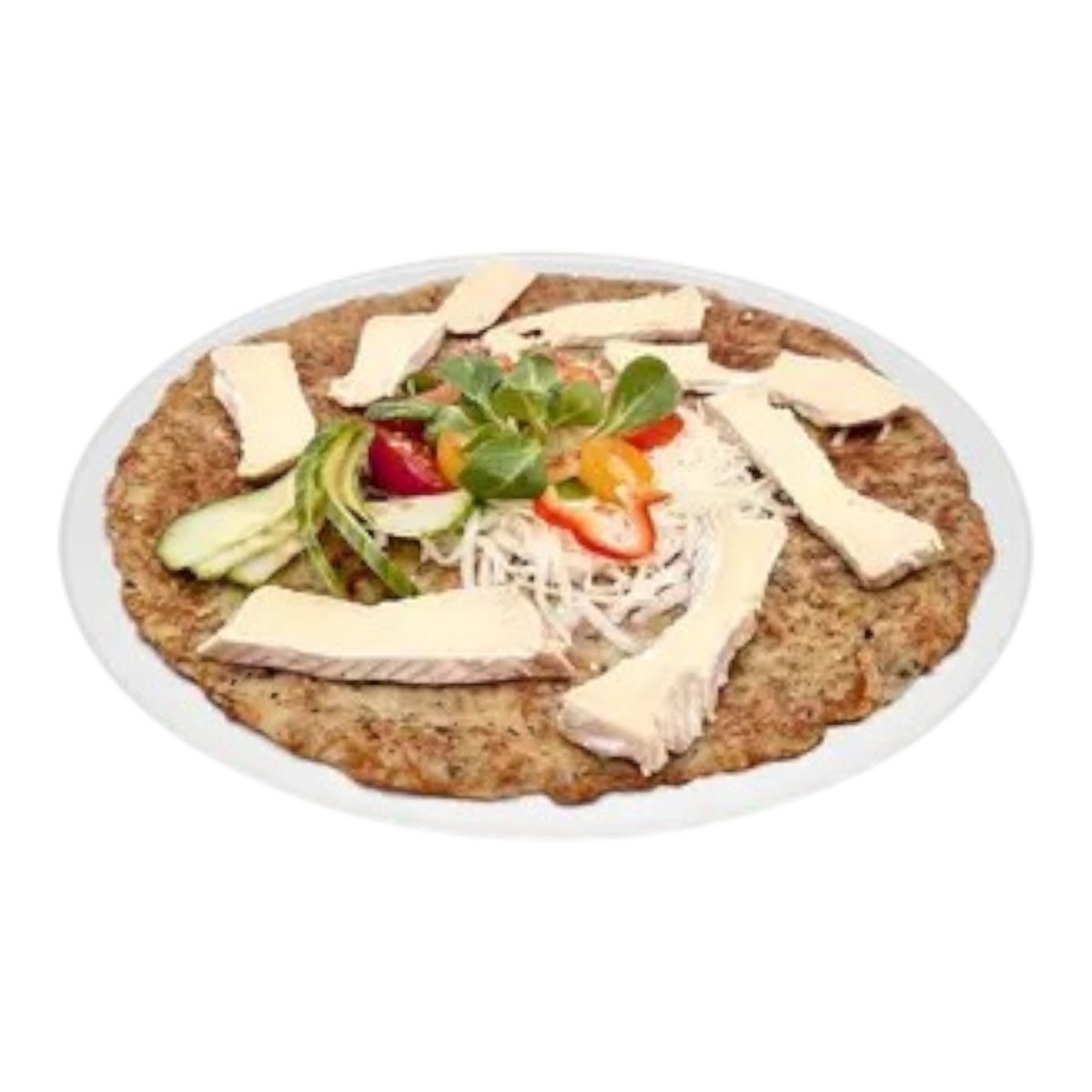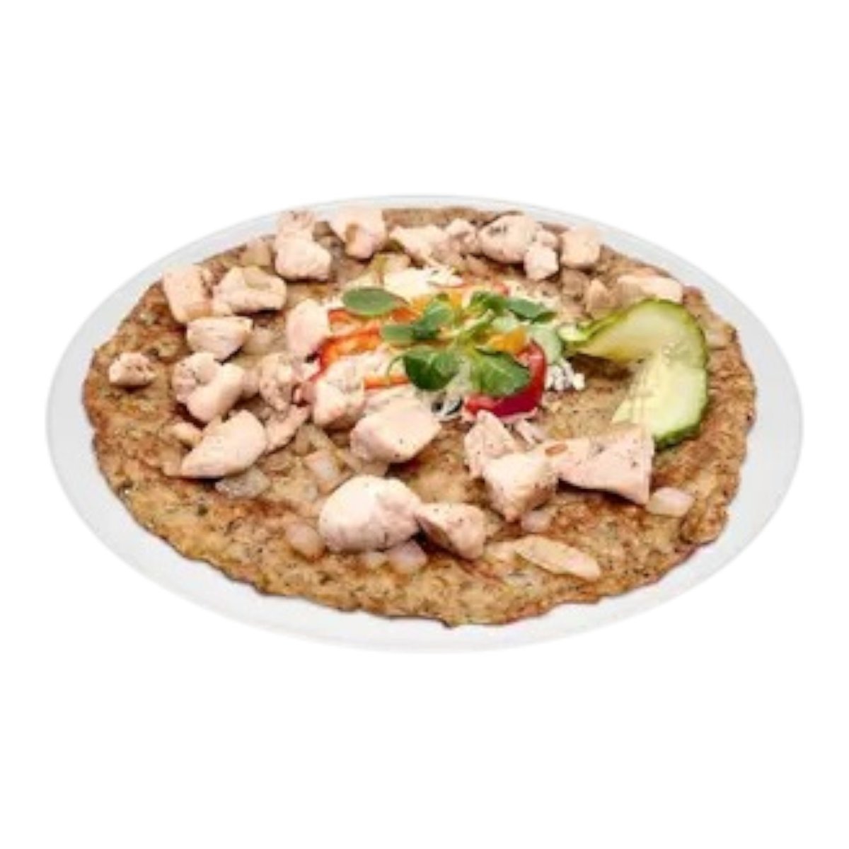 100g restované kuřecí maso, lečo, eidam, zeleninová obloha