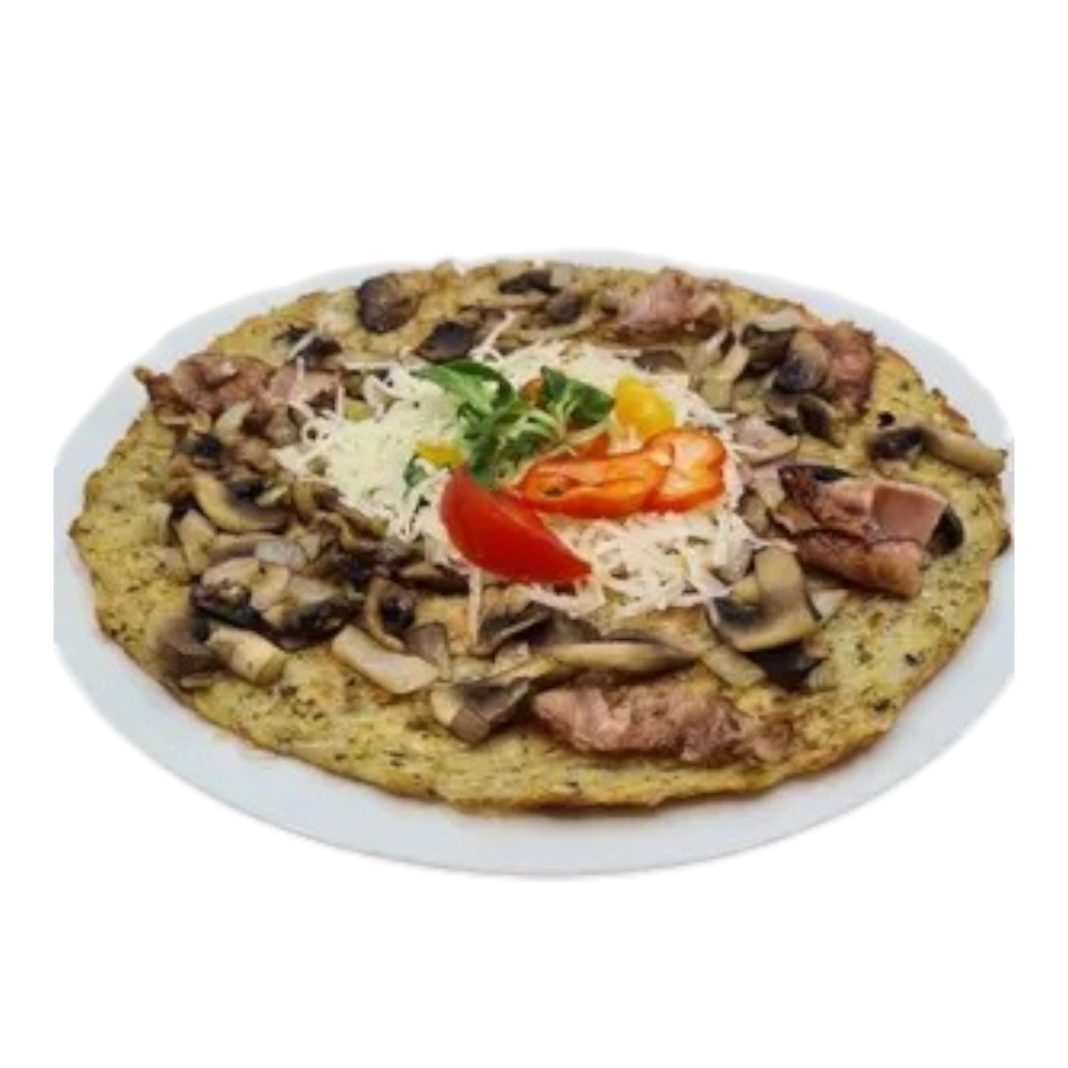 anglická slanina, žampiony, eidam, zeleninová obloha