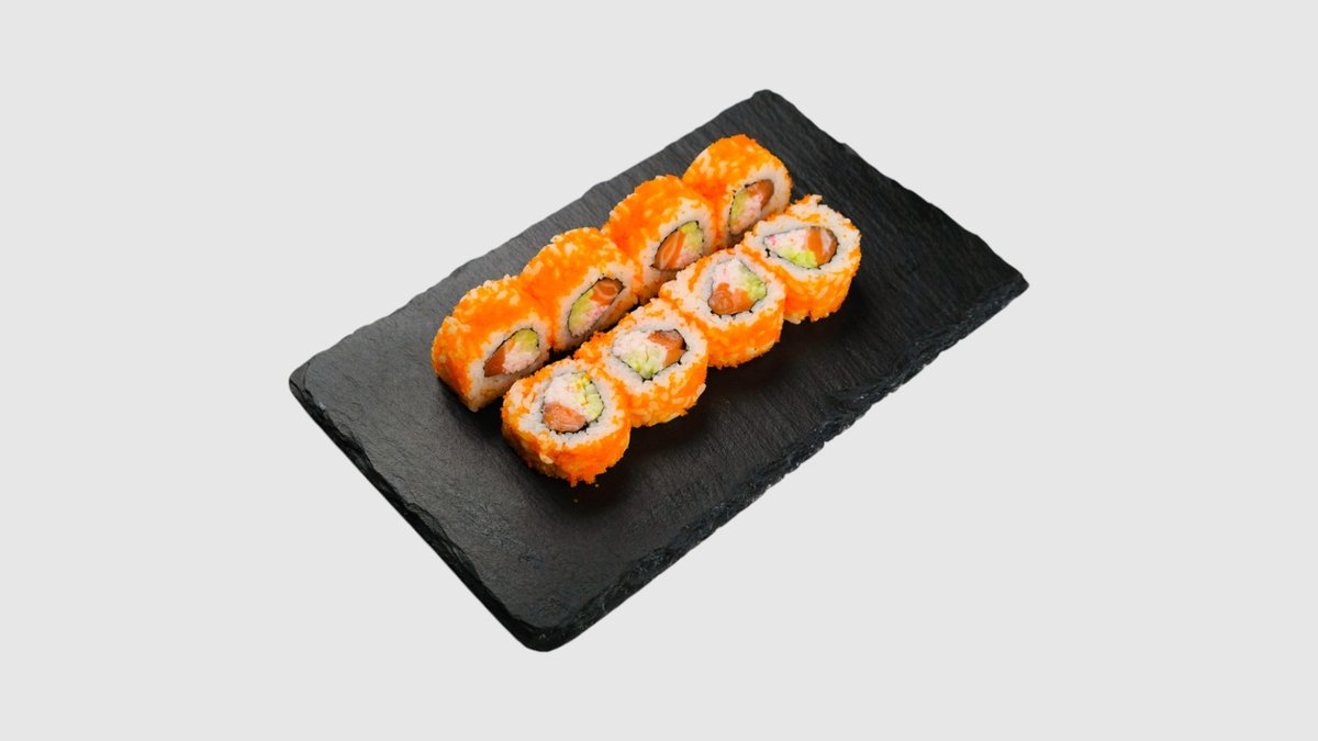 Uvnitř: losos, avokádo, okurka / Venku: kaviár Tobiko červený