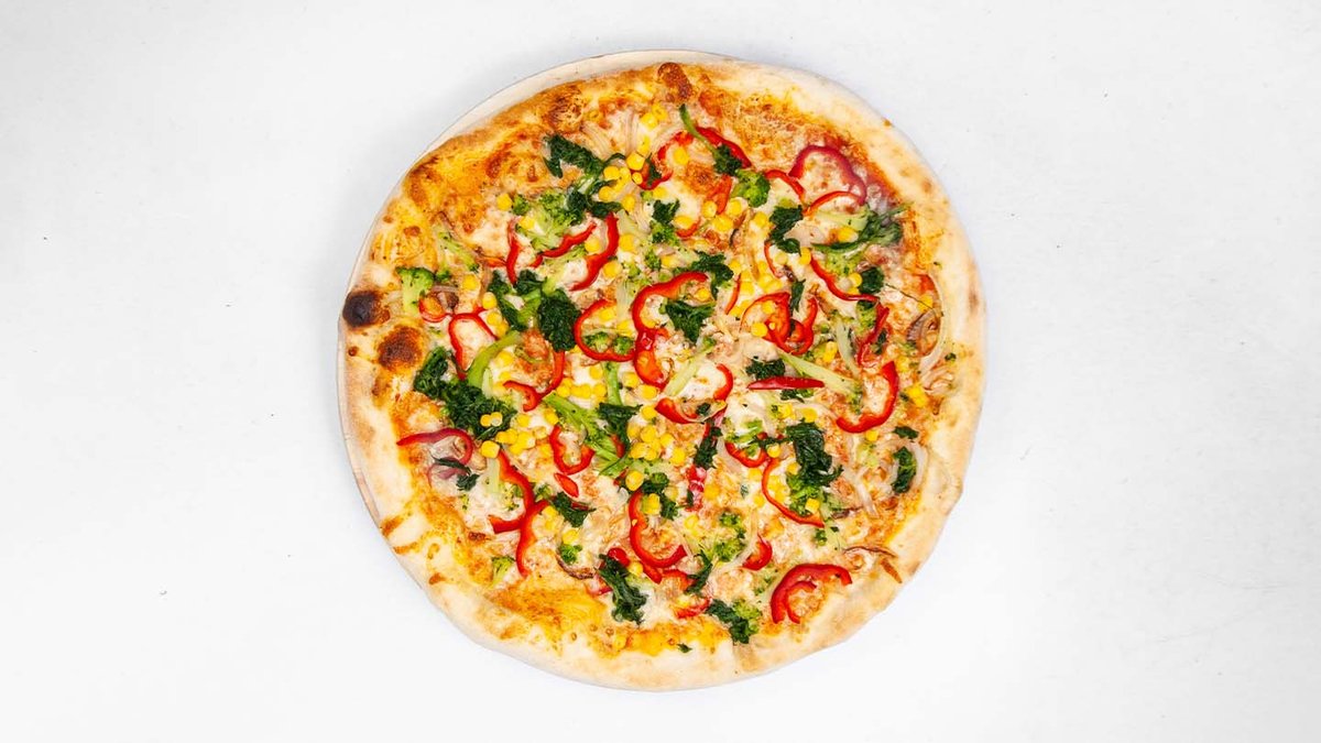 rajčatový základ, sýr, salám, kukuřice, cibule, feferonky